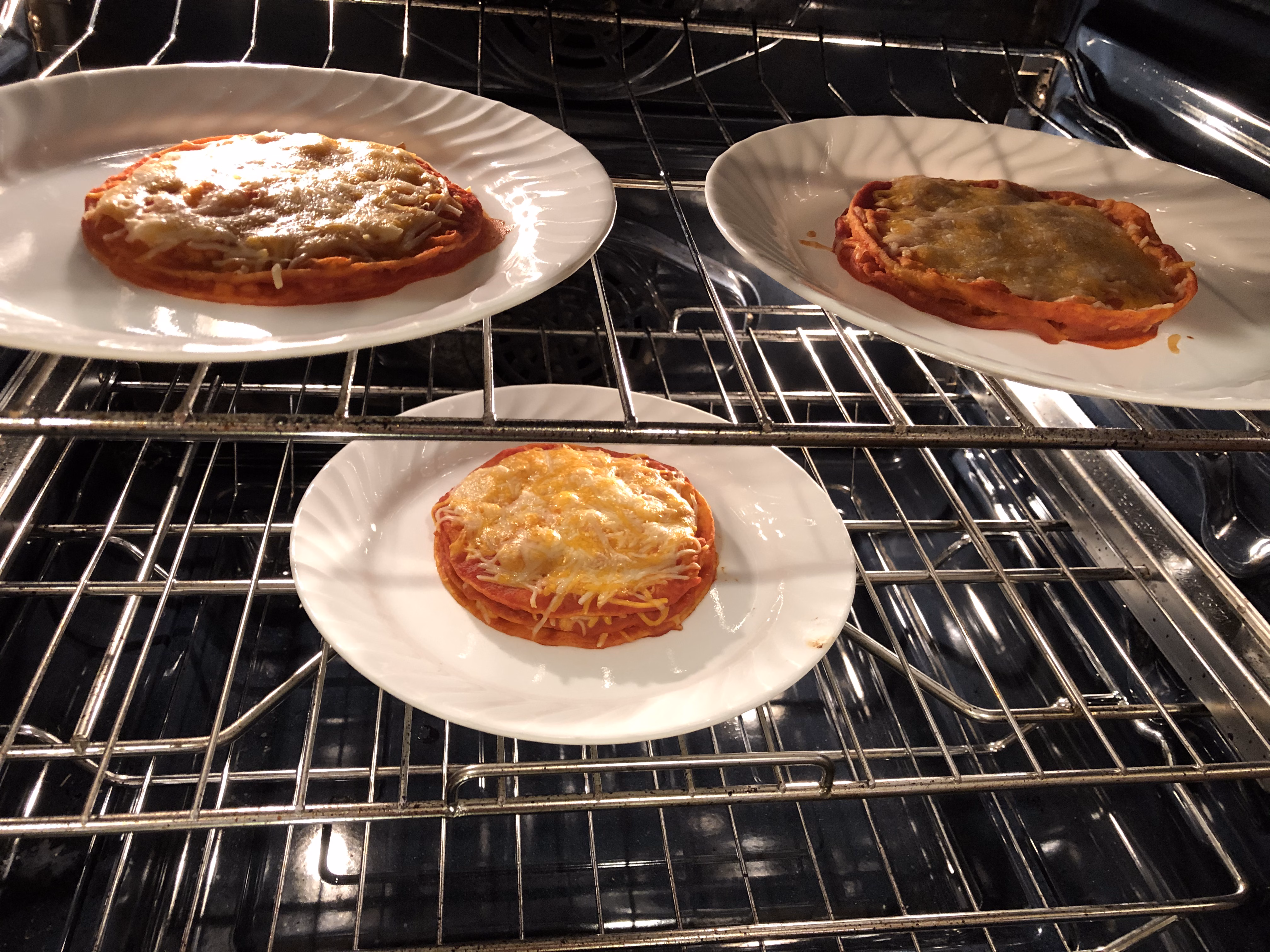 Place in a 350°F oven and let the cheese melt. I put them in one at a time as I assemble them.
