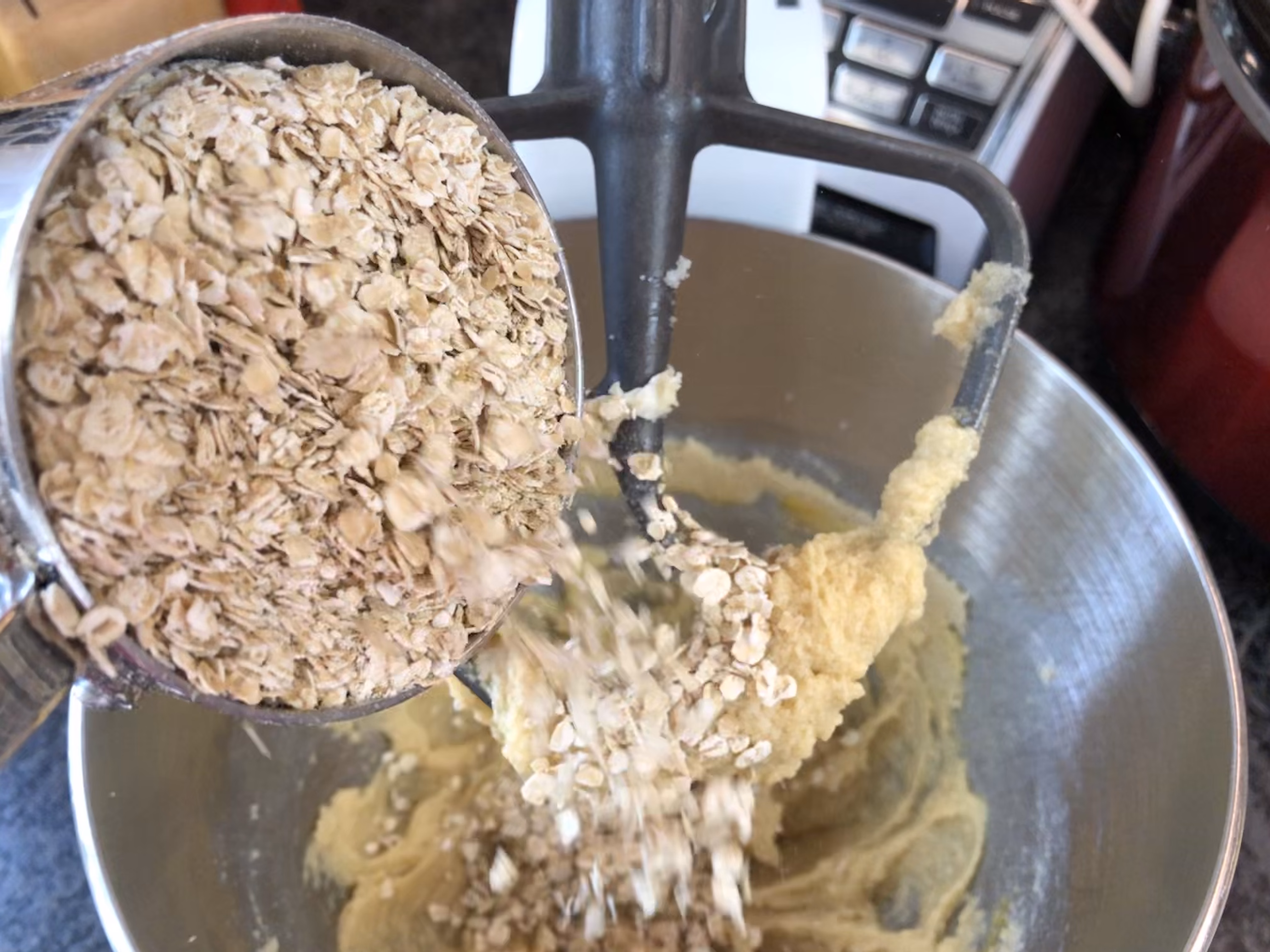 Add the 1 cup oats and 1 1/2 cups oat flour.