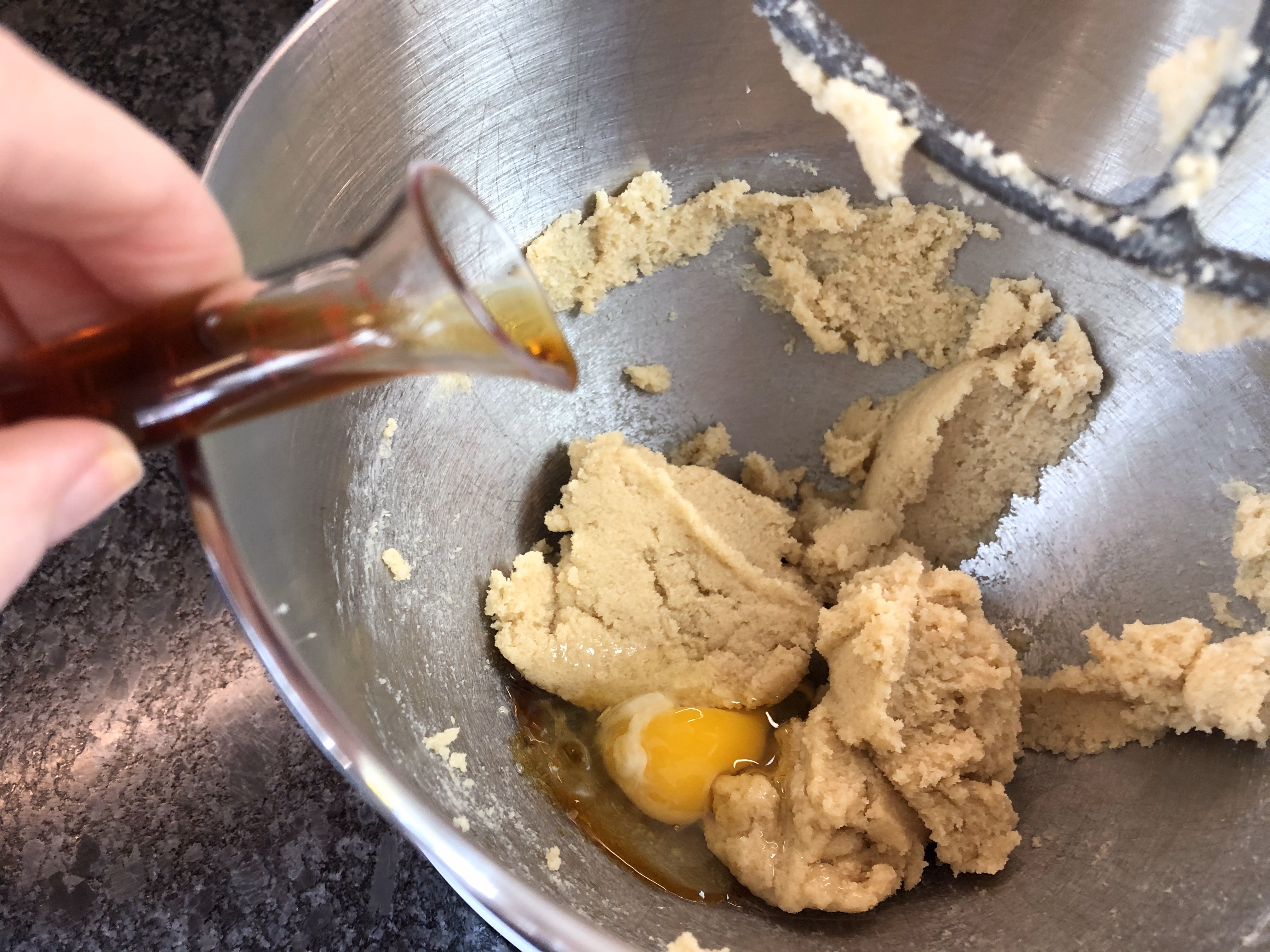 Mix in the egg and 1 teaspoon vanilla.