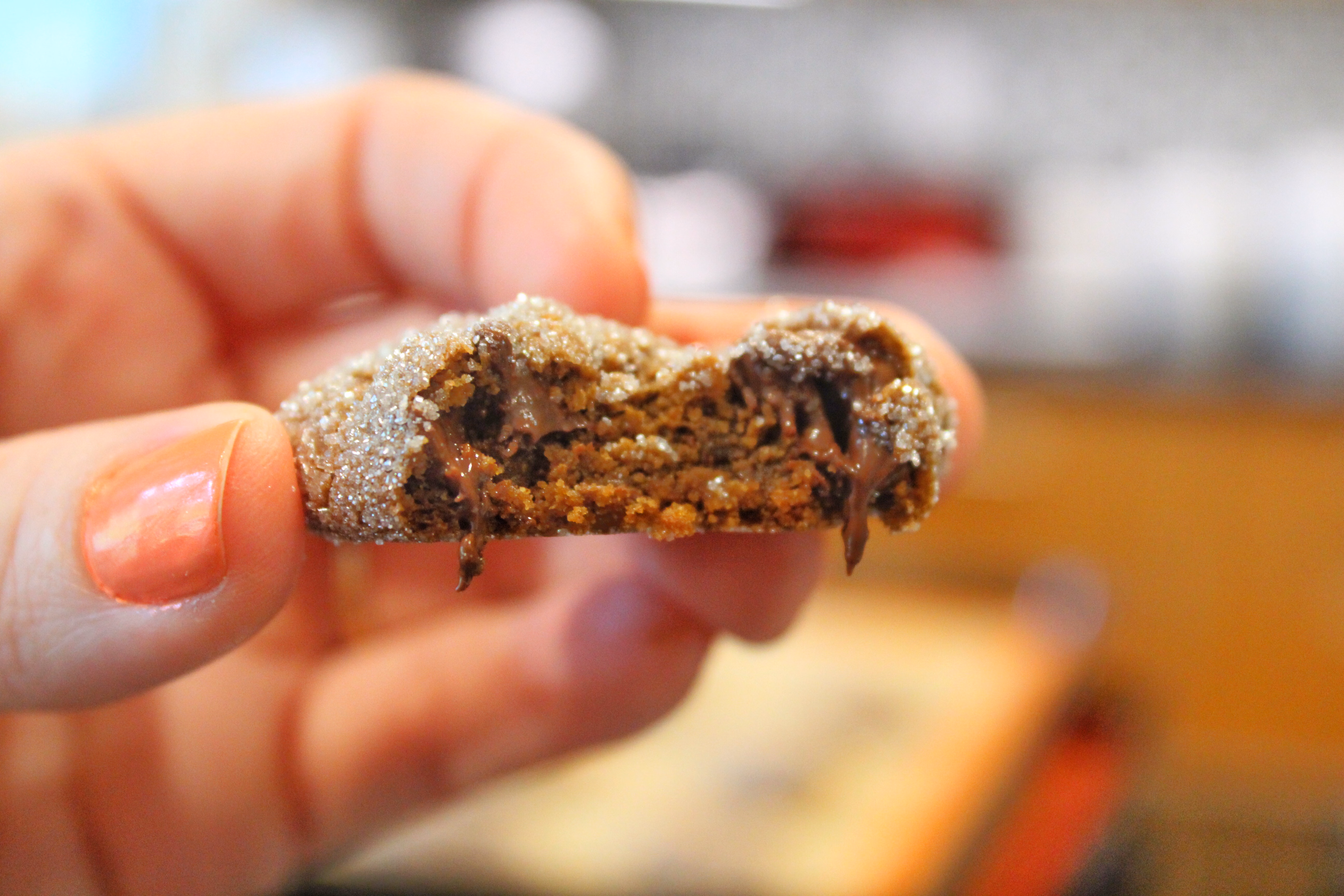 The contrast of the crisp sugar coating and the soft gingerbread center studded with melted chocolate is DIVINE.