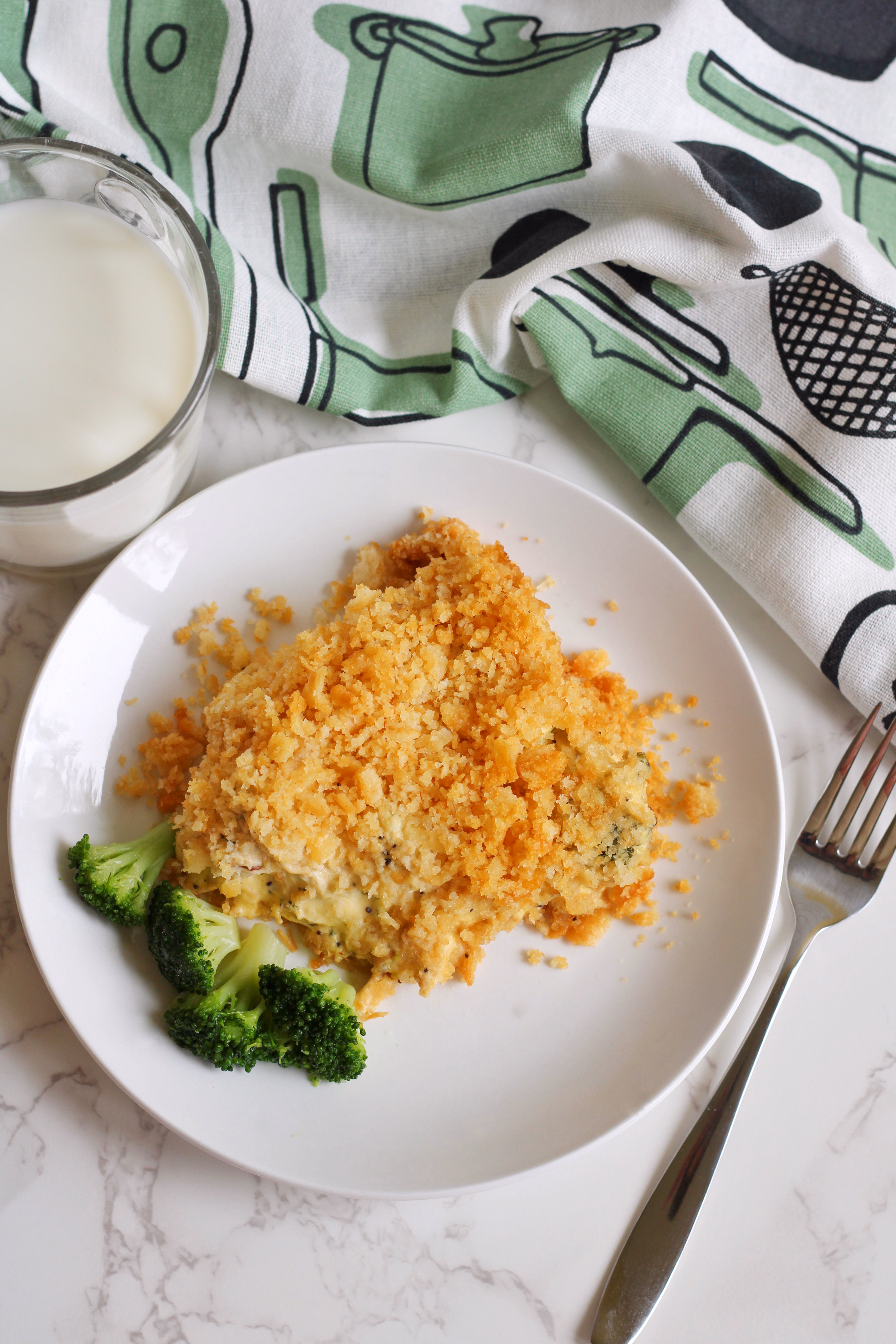 Preheat the oven to 350°F. As you can see, I make a special bowl for my youngest son who detests broccoli. I know, I know...... I have grown soft in my mothering and shouldn't cater to his pickiness, but I've decided with this meal, I just want him to eat! ! Bake for 30-35 minutes, until bubbly and hot. It will take a little longer if you use frozen broccoli.