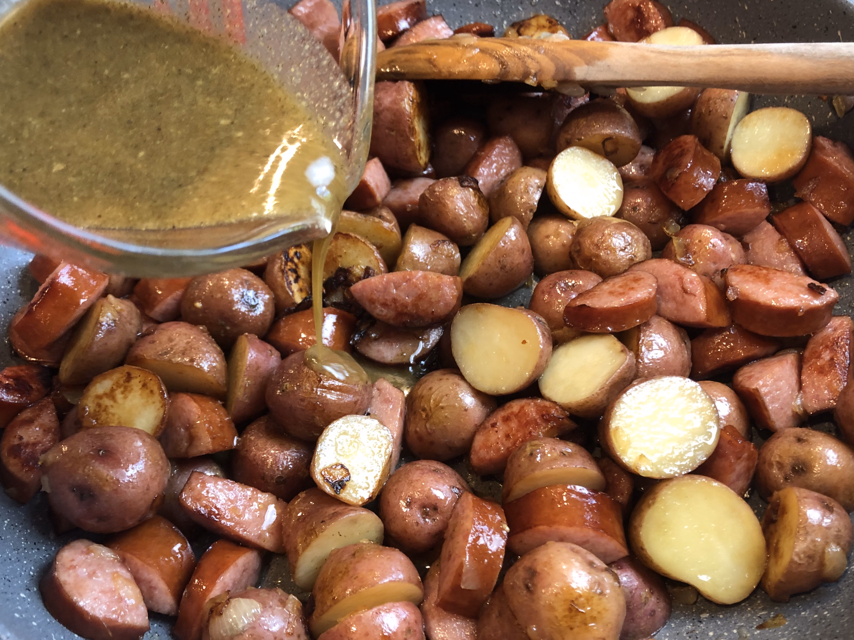 Don't we all need more one-skillet-ready-in-30-minute dinners? This is a favorite! I've had this recipe in my rotation for over 10 years now, and it tastes great every time. It uses a smoked kielbasa, red potatoes, and spinach with a very tasty glaze. Of course, I still have kids who eat AROUND the "green stuff", but I personally enjoy wilted spinach and know the goodness that comes from eating it! Oh, and there is bacon in there too. Yes! I like to serve this with a bowl of vanilla yogurt topped with berries and granola. It's a well-rounded and satisfying meal!