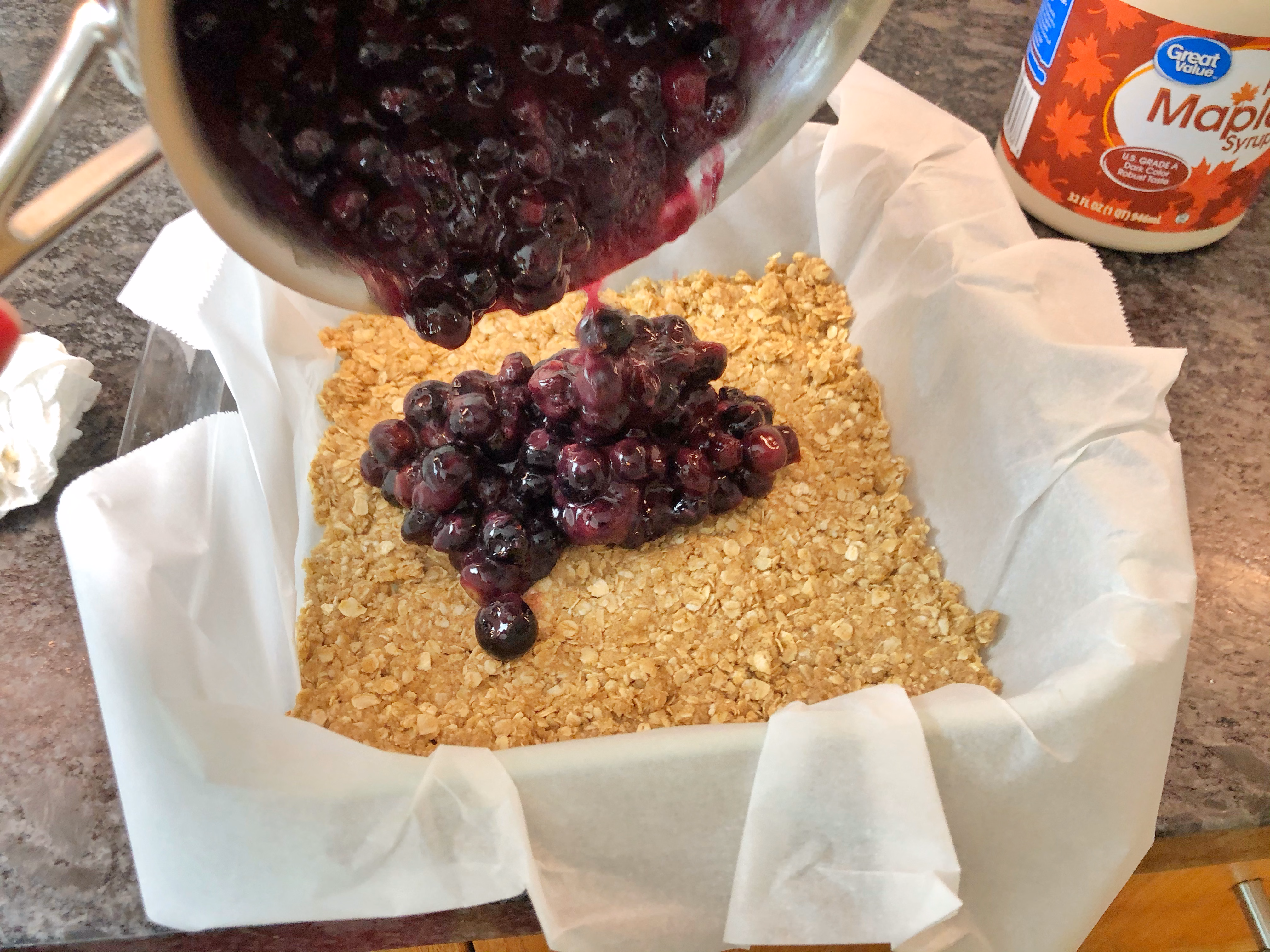 Using your spatula, even the blueberries out until it covers the entire crust.
