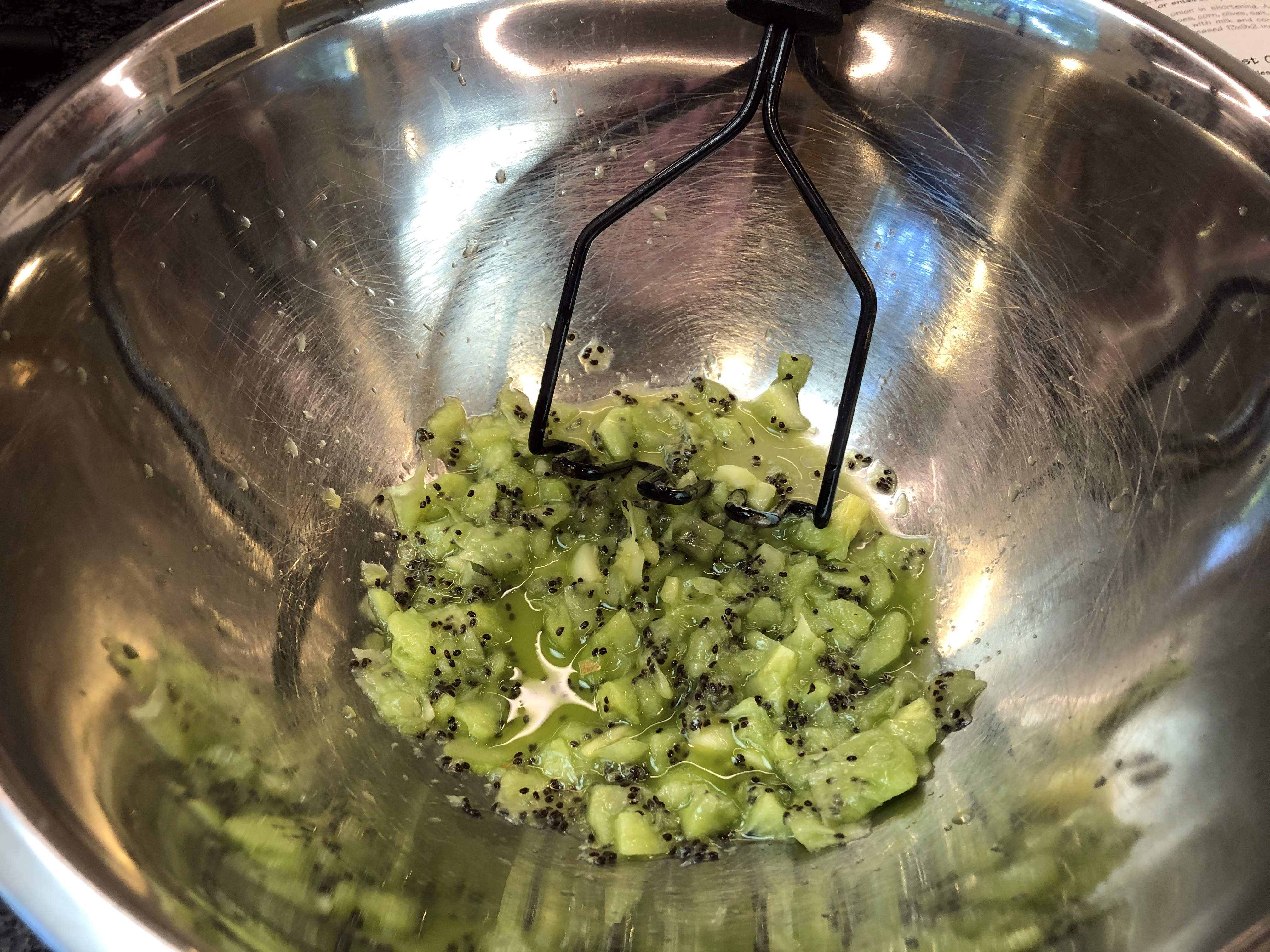 Mash your kiwi. I had two because the only ones I could find at the store were very small, but one large will do.