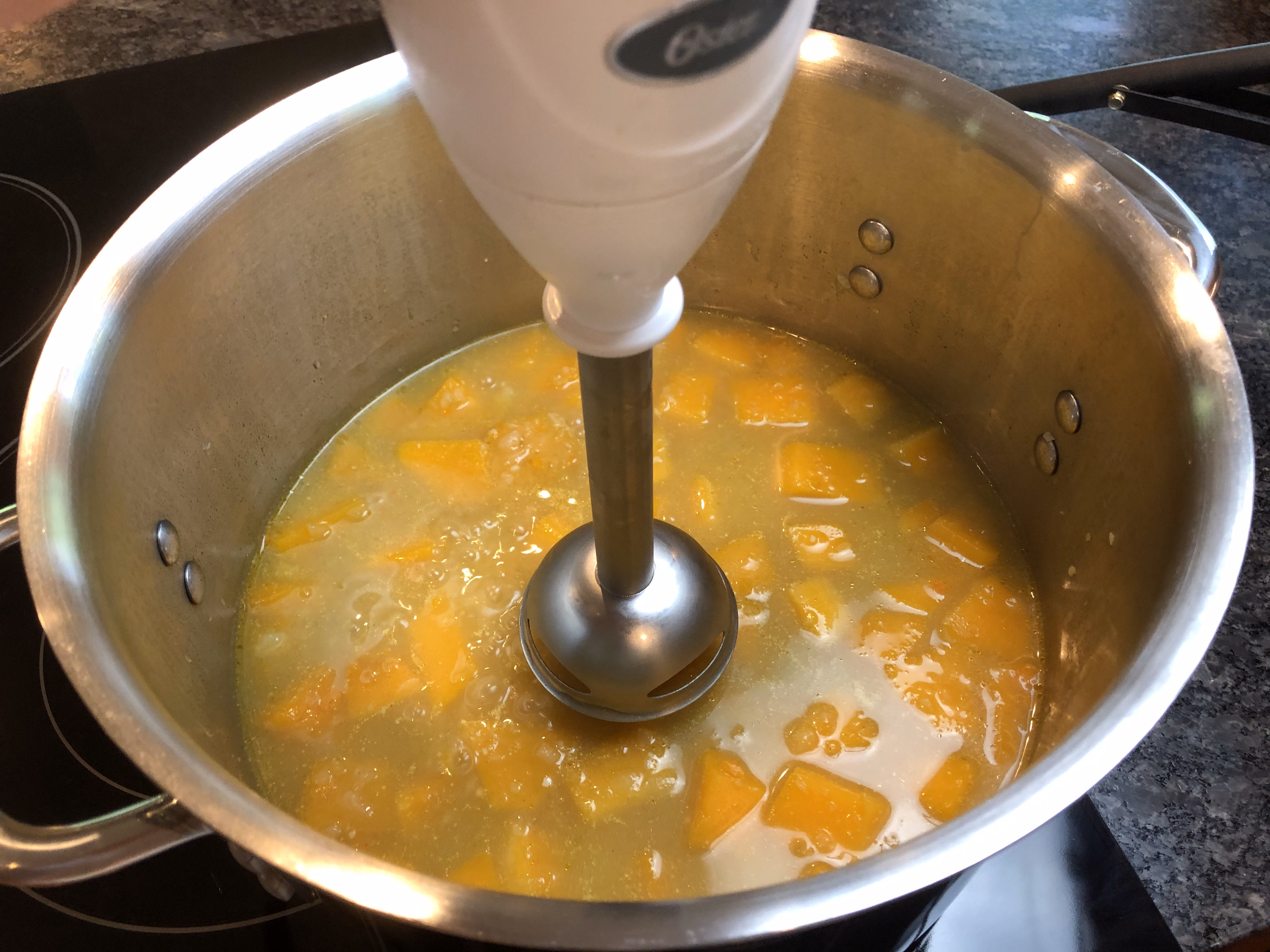 Using an immersion blender, blend the soup until completely smooth.