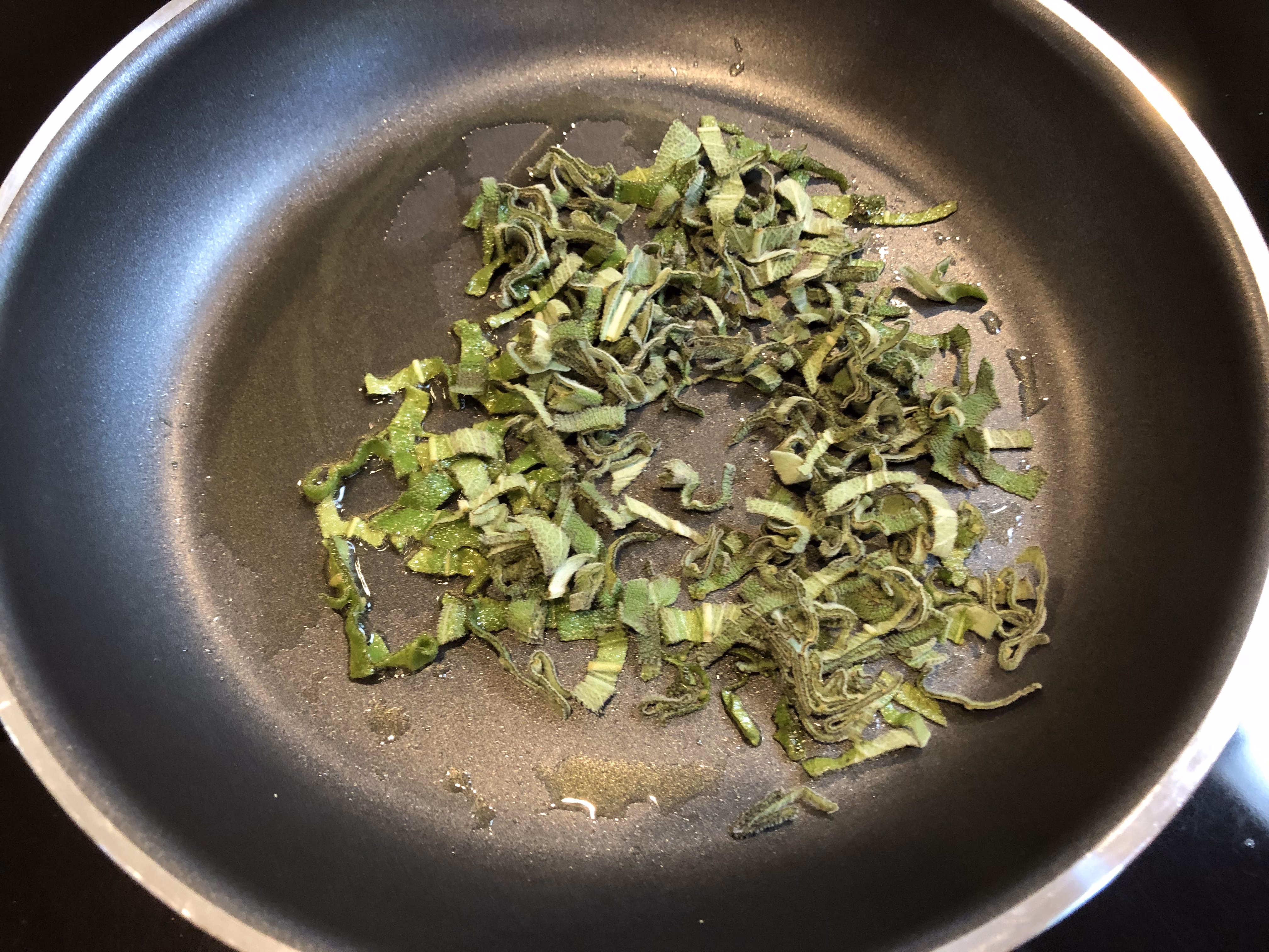 In a small skillet, cook the chopped fresh sage in olive oil (or bacon drippings) until crisp. Remove and sprinkle with kosher salt.
