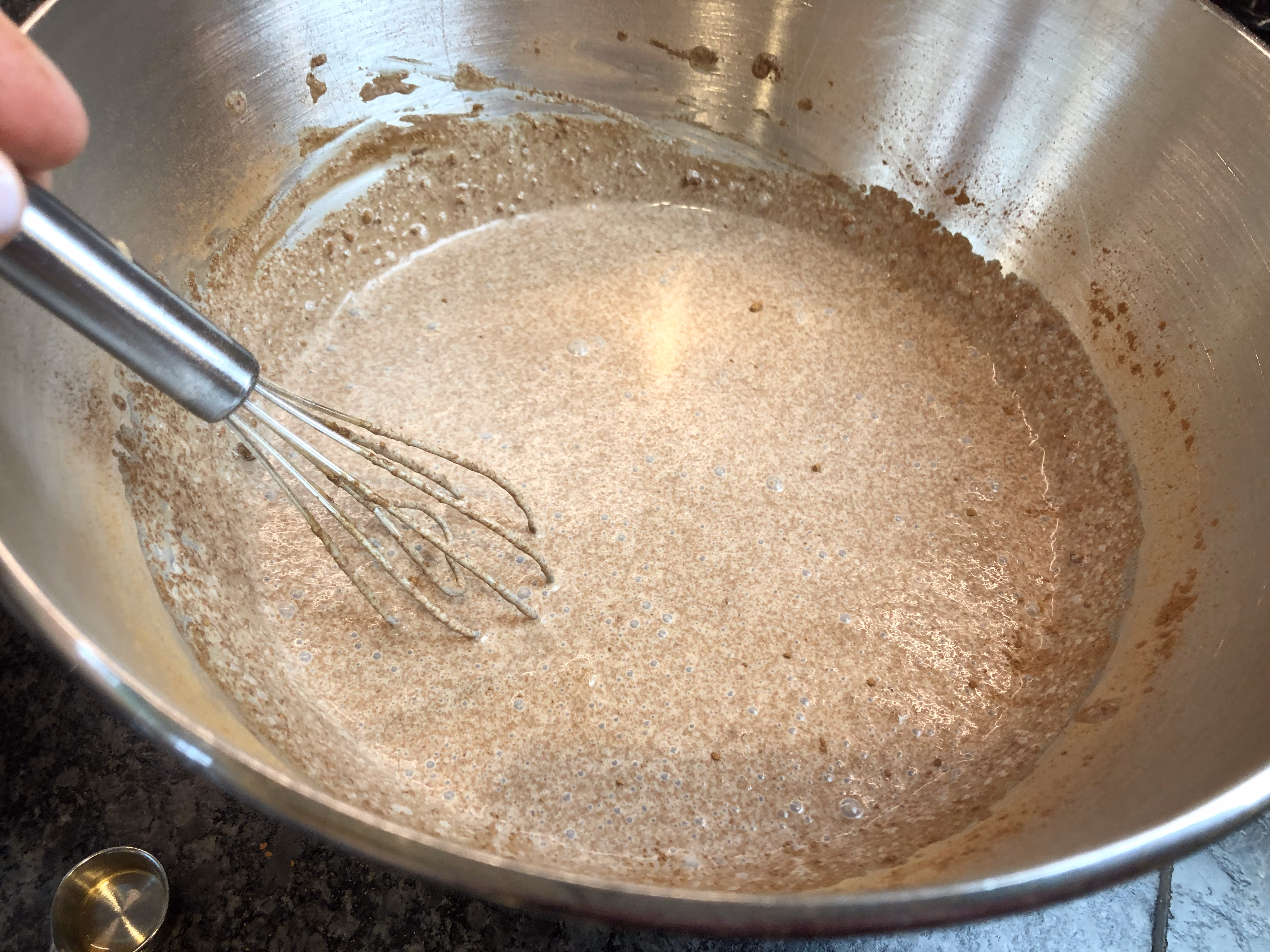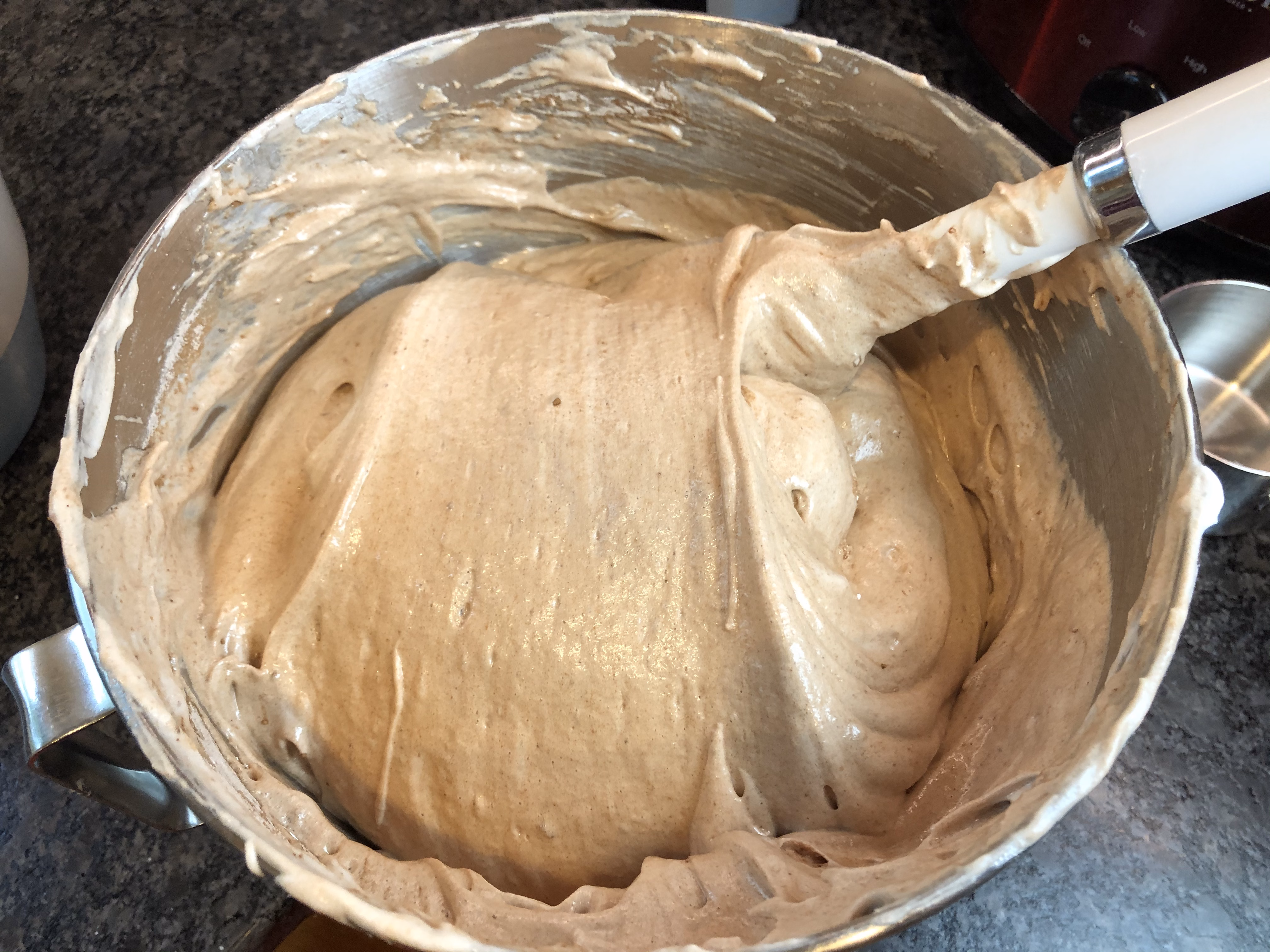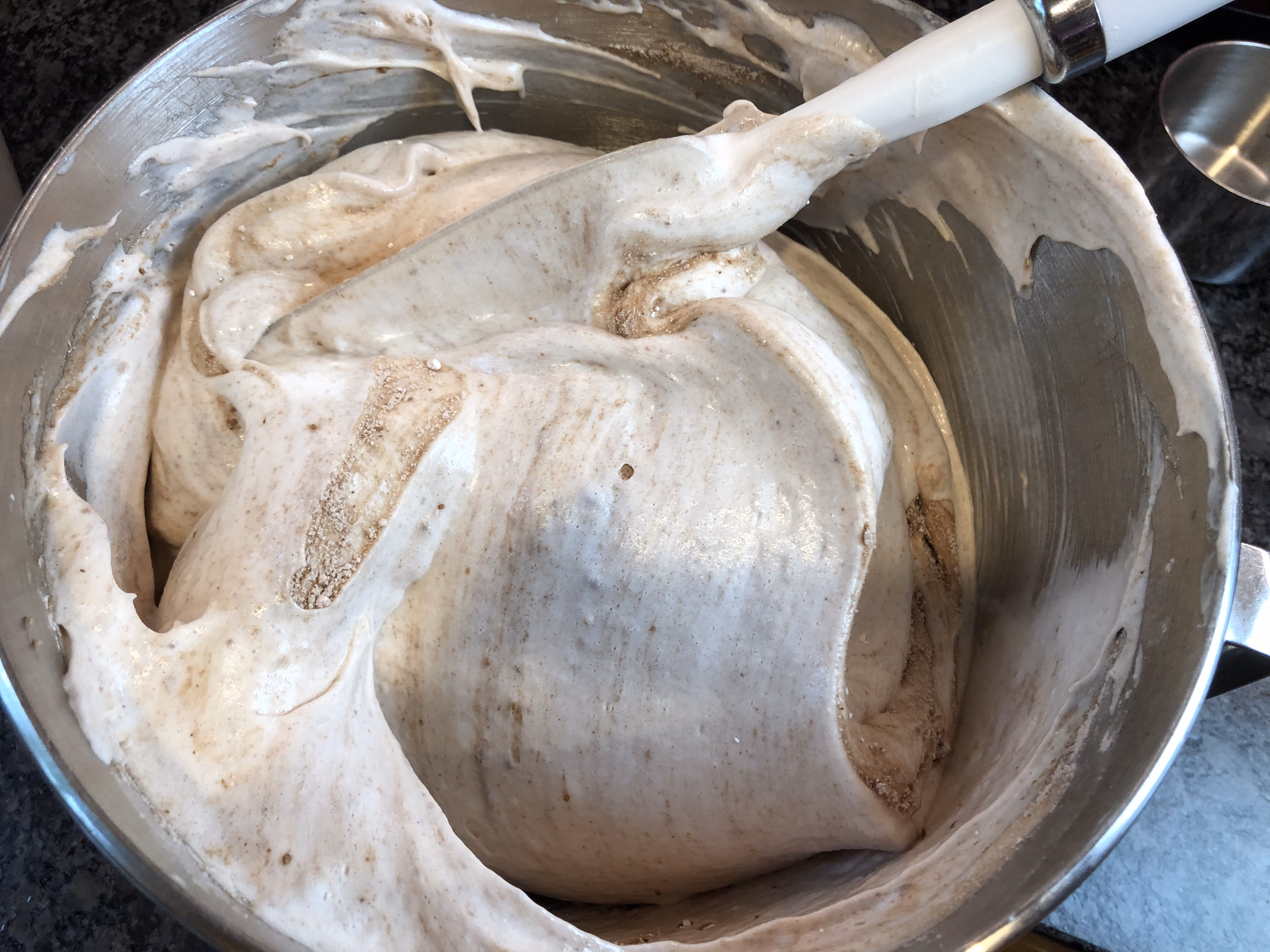Fold in the dry ingredients with a large spatula, about 1/3 at a time, until combined.