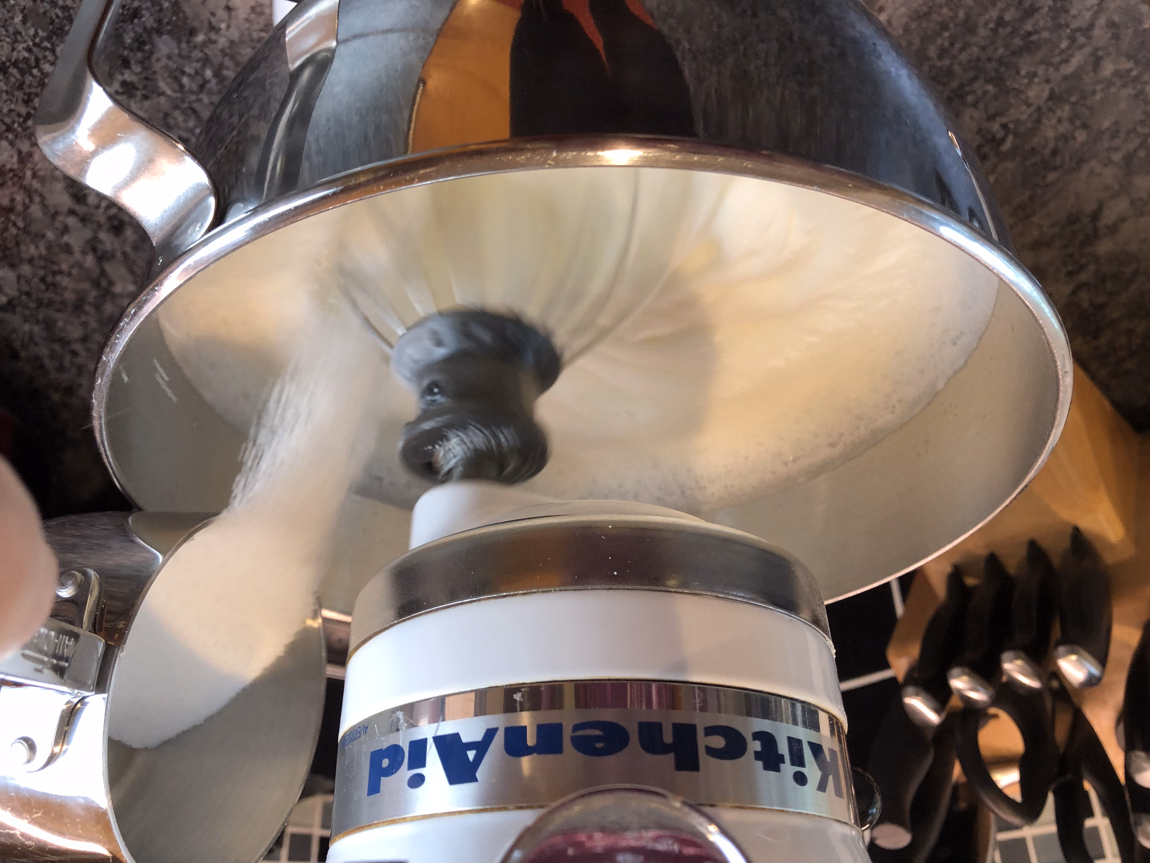 Add your 1 1/2 cups egg whites to a large mixing bowl. Add 1 1/2 teaspoons cream of tartar, and 1/2 teaspoon salt. Beat until soft peaks form.