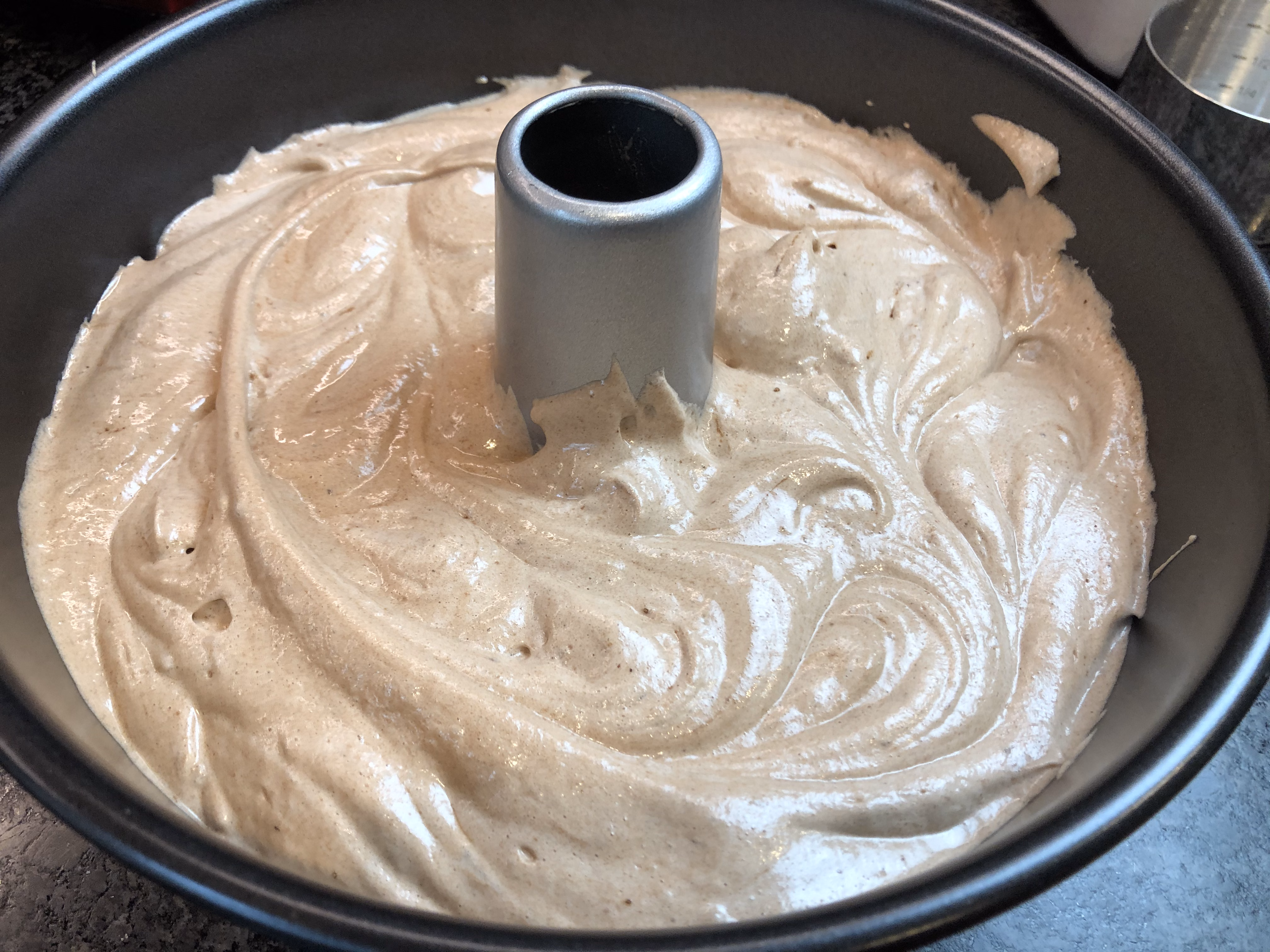 Pour the batter into an angel food cake pan. (Do NOT grease the pan). If you don't have this pan, you should get one! They work so great and are fun to have on hand. And..... they are kind of a necessity for this cake, and you know you want to make this cake!