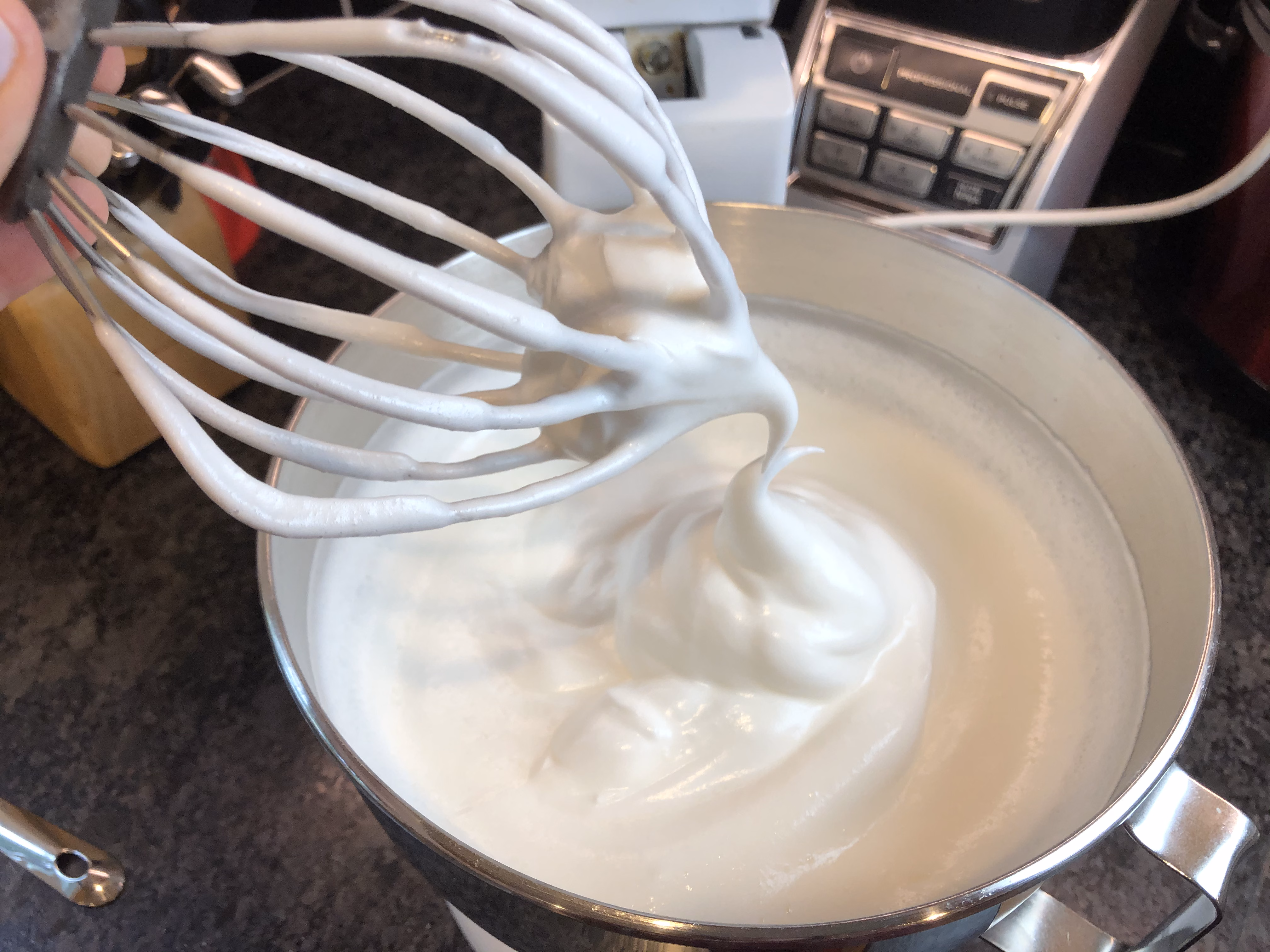 Add the 1 cup sugar, a fourth at a time, while beating the eggs. Continue beating until stiff peaks form.......