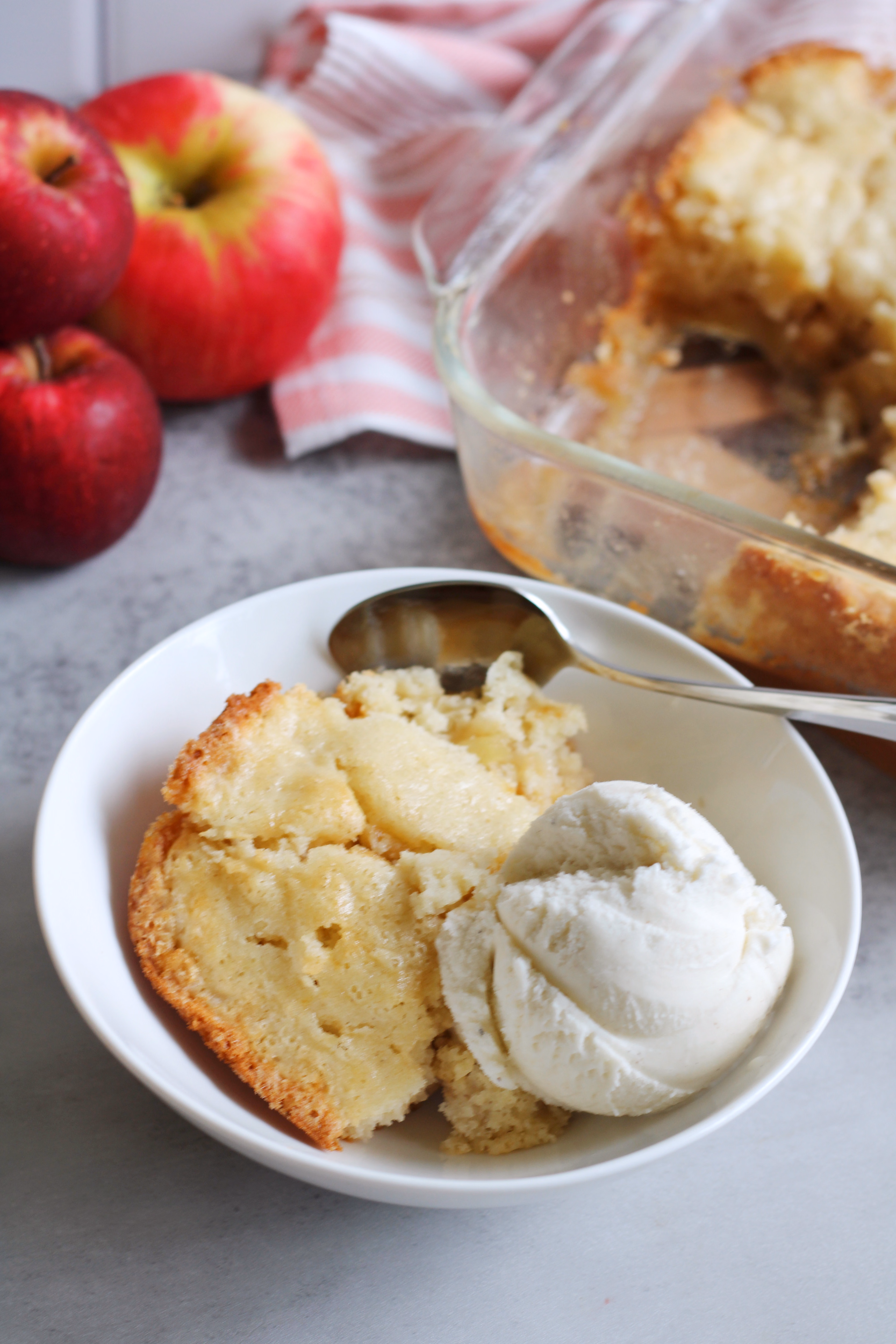Our family has decided we may like this even better than apple pie! It's almost a magical recipe because you make a batter and spread it on the bottom of your baking dish, then top with chopped fresh apples, sprinkle with brown sugar, and drizzle with melted butter. As it cooks, the batter comes up to the top and bakes golden and delicious (especially the edges) because of the butter. The apples are snug underneath and the perfect consistency. So incredible with a scoop of vanilla ice cream!
