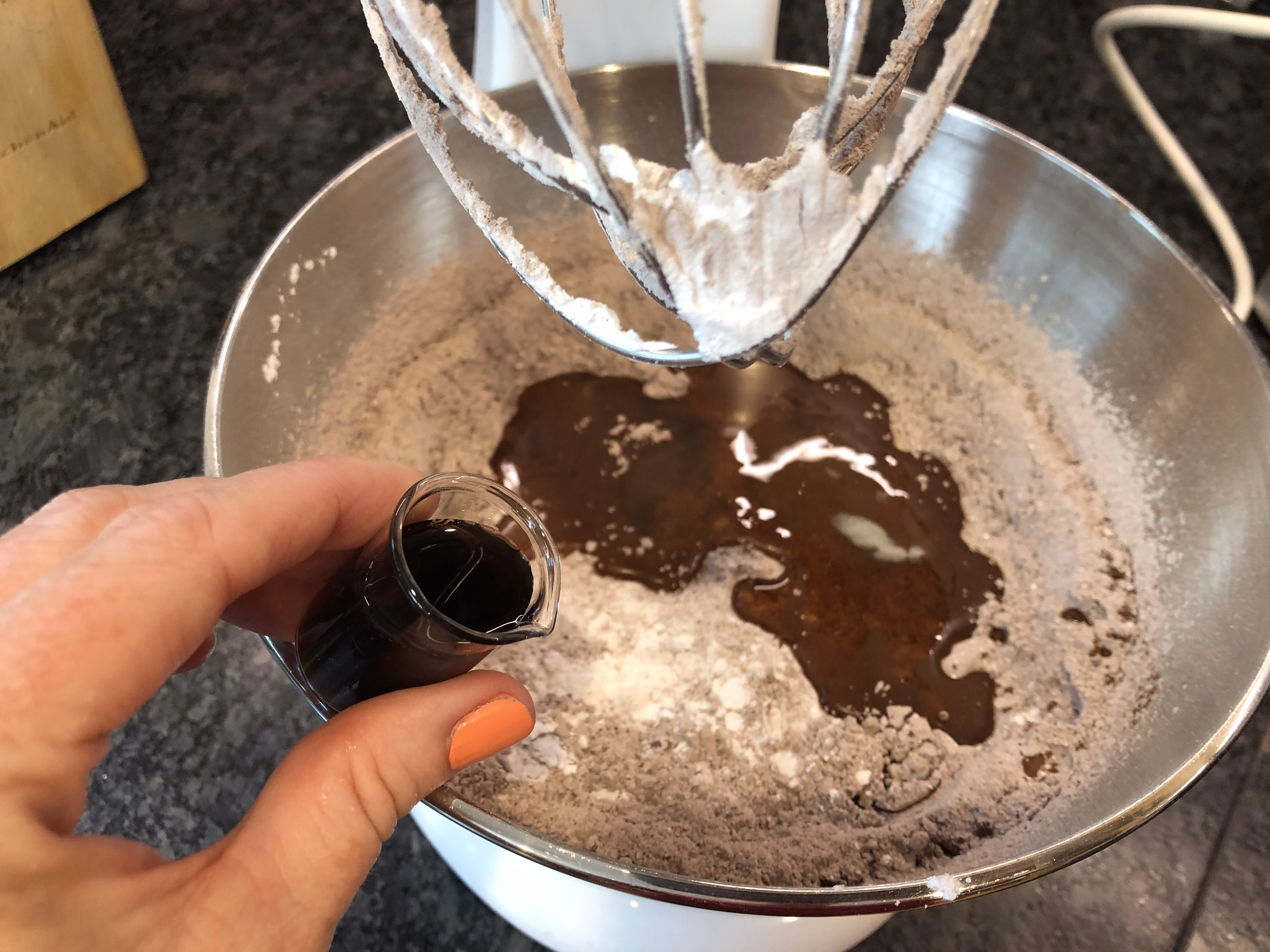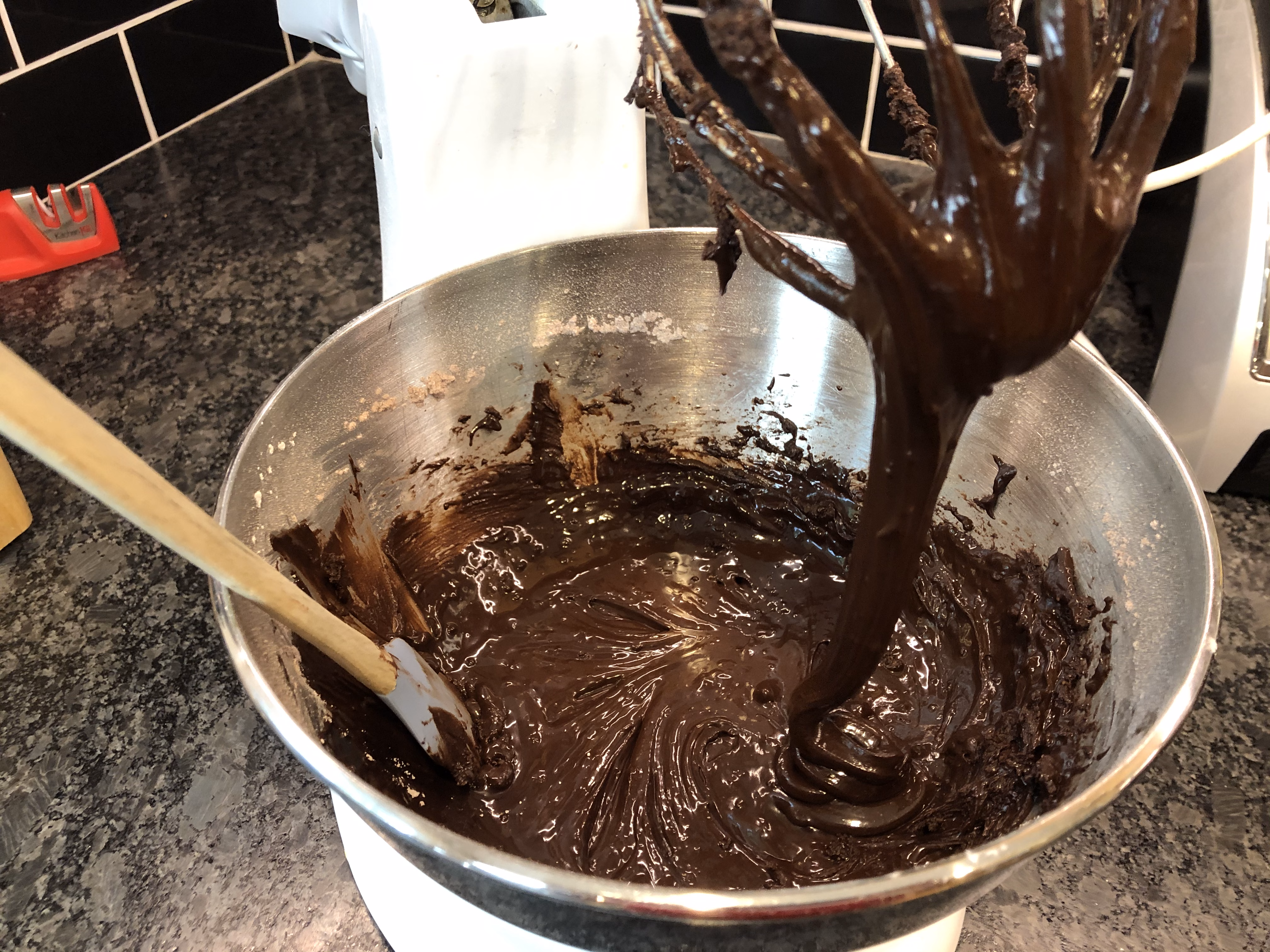Beat to combine. It should be like a thick brownie batter. If needed, add 1 more egg white; 3 always works for me if I use large eggs.