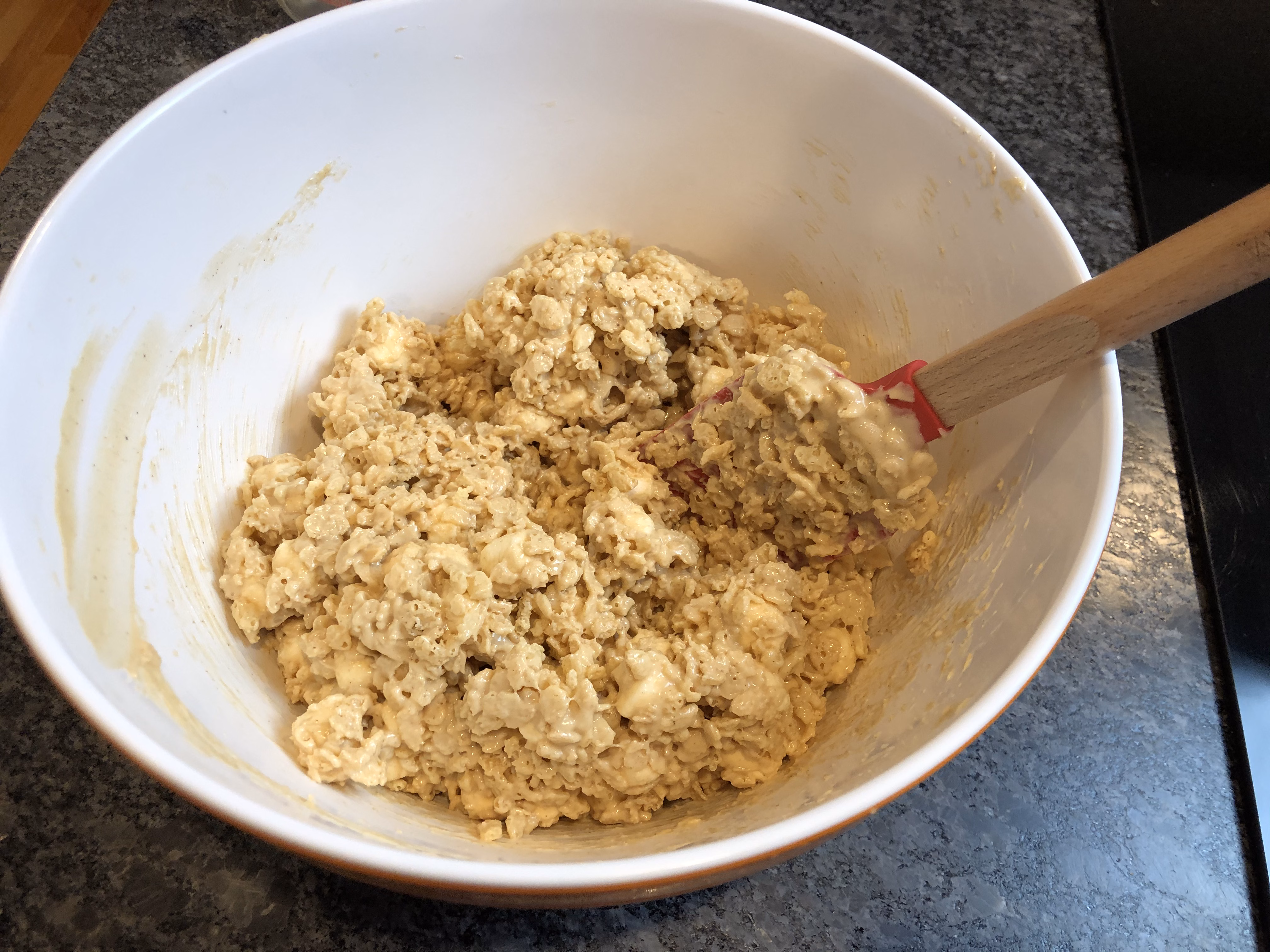 I'm not sure where these little gems got their name, but I think they should be called "Rice Krispie Crack". They are definitely similar to the well-loved krispie treat, only taken up a notch, and super addicting. My gluten-free daughter is enjoying her first year at college, and her apartment makes these every week. They are easy to throw together, require no baking, and have a really fun texture with the crisp rice and soft marshmallows. If I were to be stuck in an avalanche of these bad boys, I would not complain!