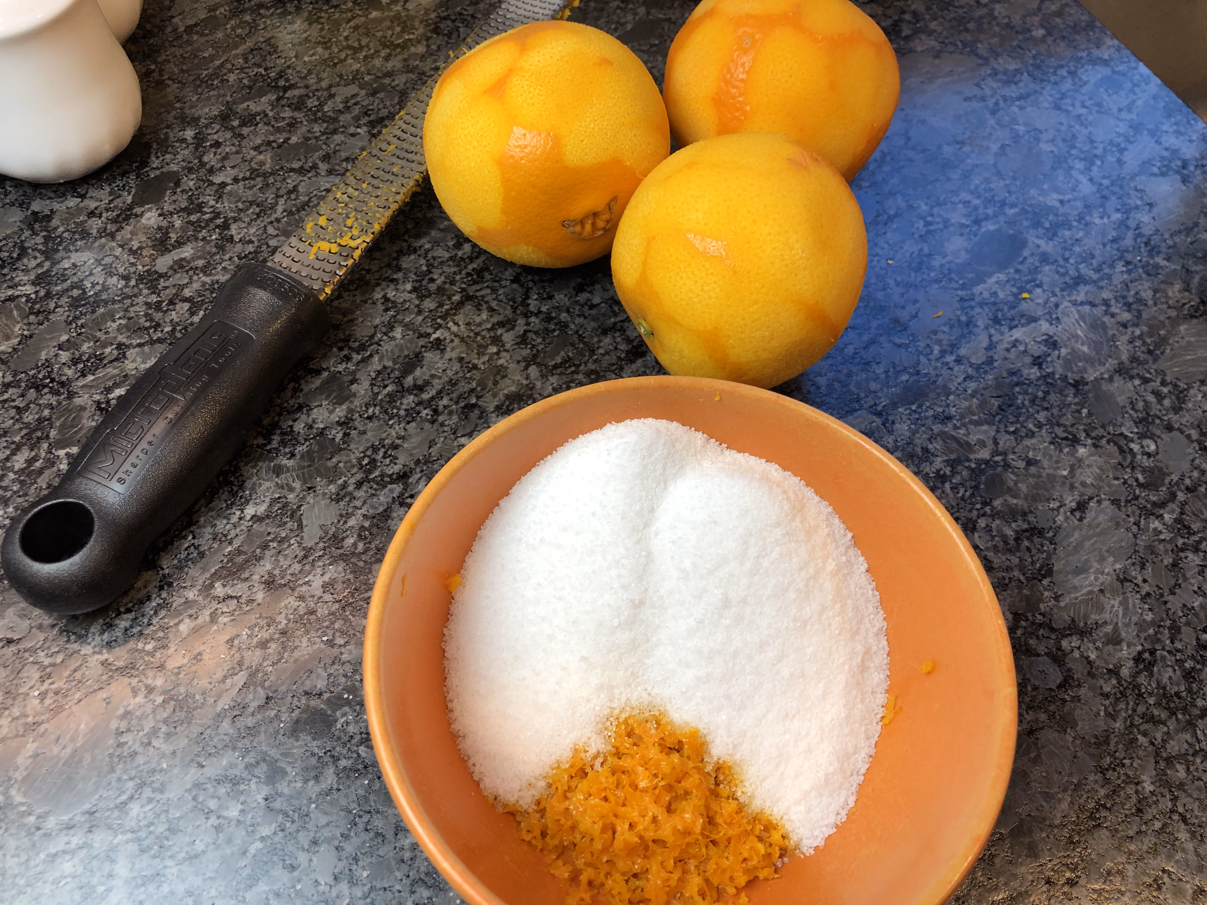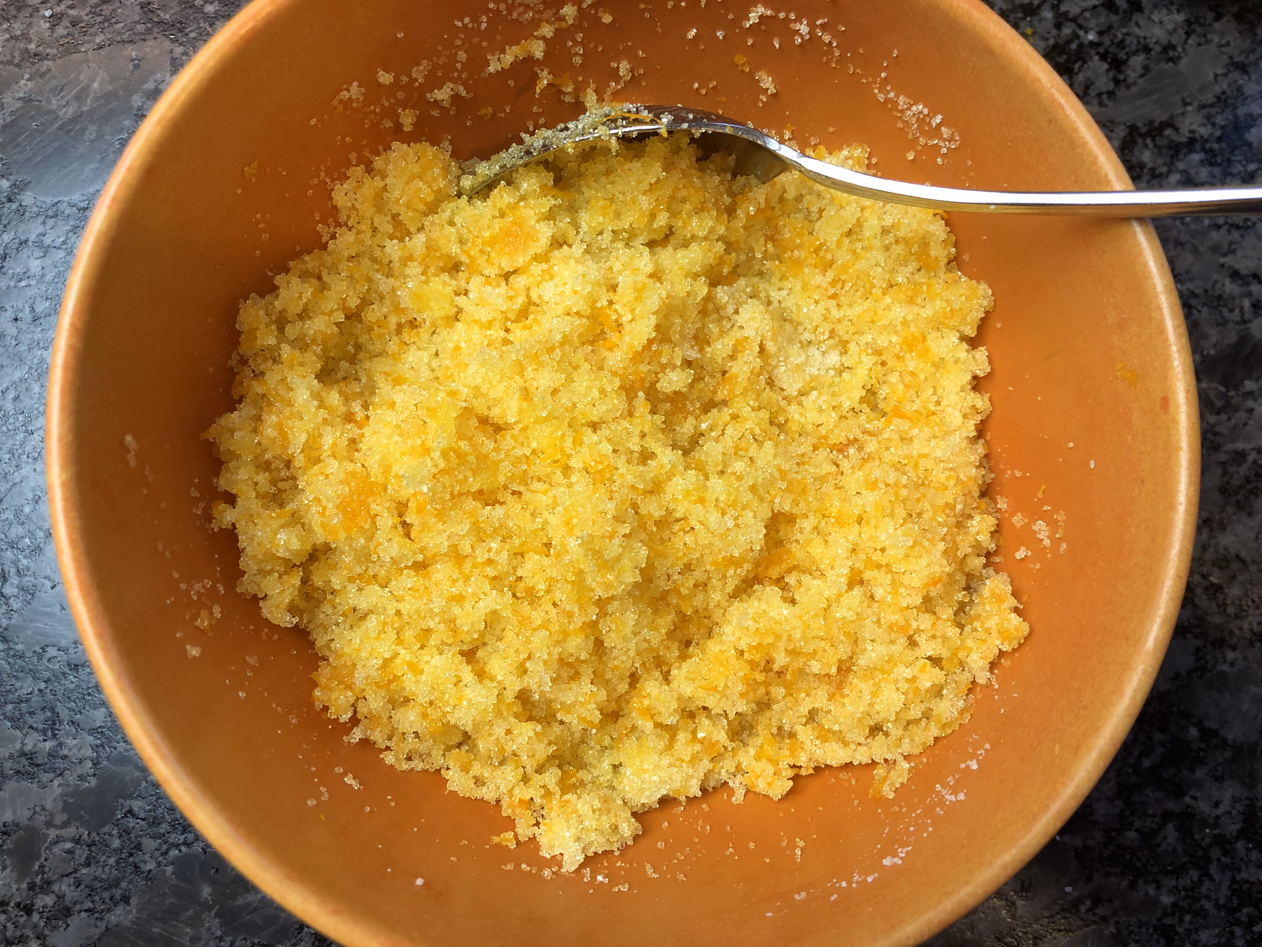 In a mixing bowl, combine the zest from the oranges (about 3 tablespoons) and the sugar.