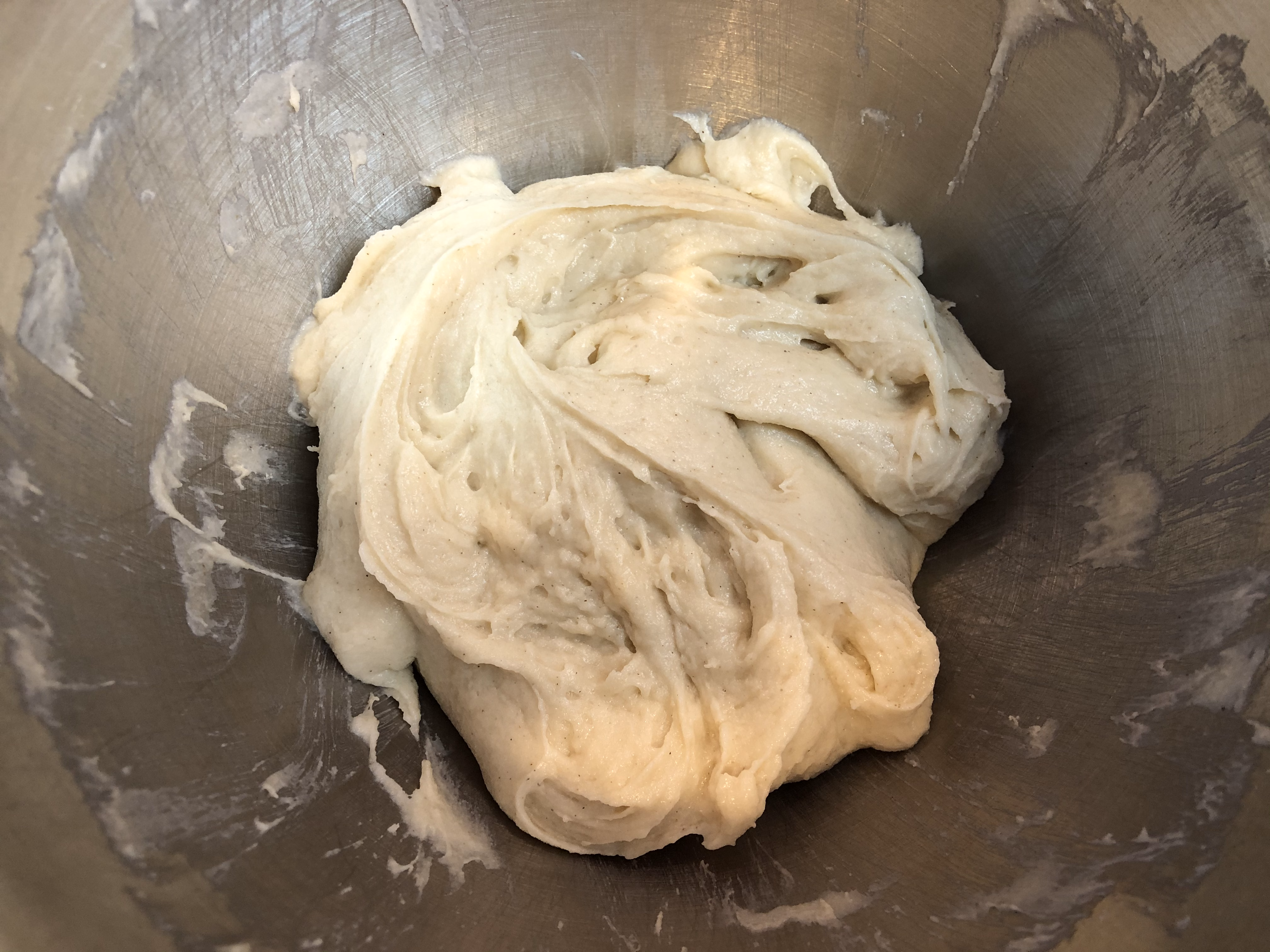 Mix until combined and smooth. The dough will be sticky and soft. Use a spatula to get it into a ball, then cover the bowl with a towel or plastic wrap and let the dough rise for 1 hour.
