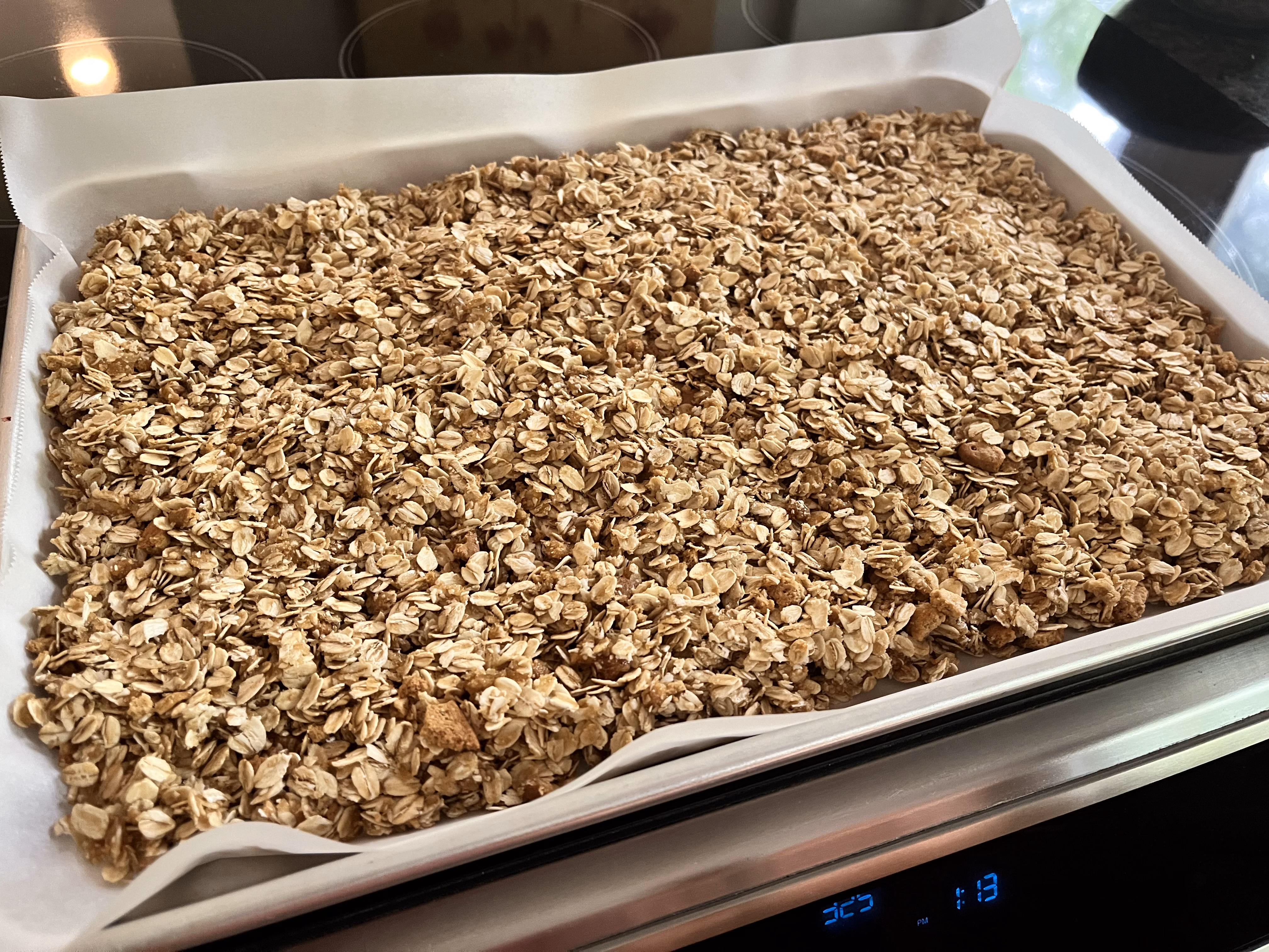 After you remove from the oven for the last time, DO NOT STIR. You want to let the granola completely cool so that clusters can form and stick together.