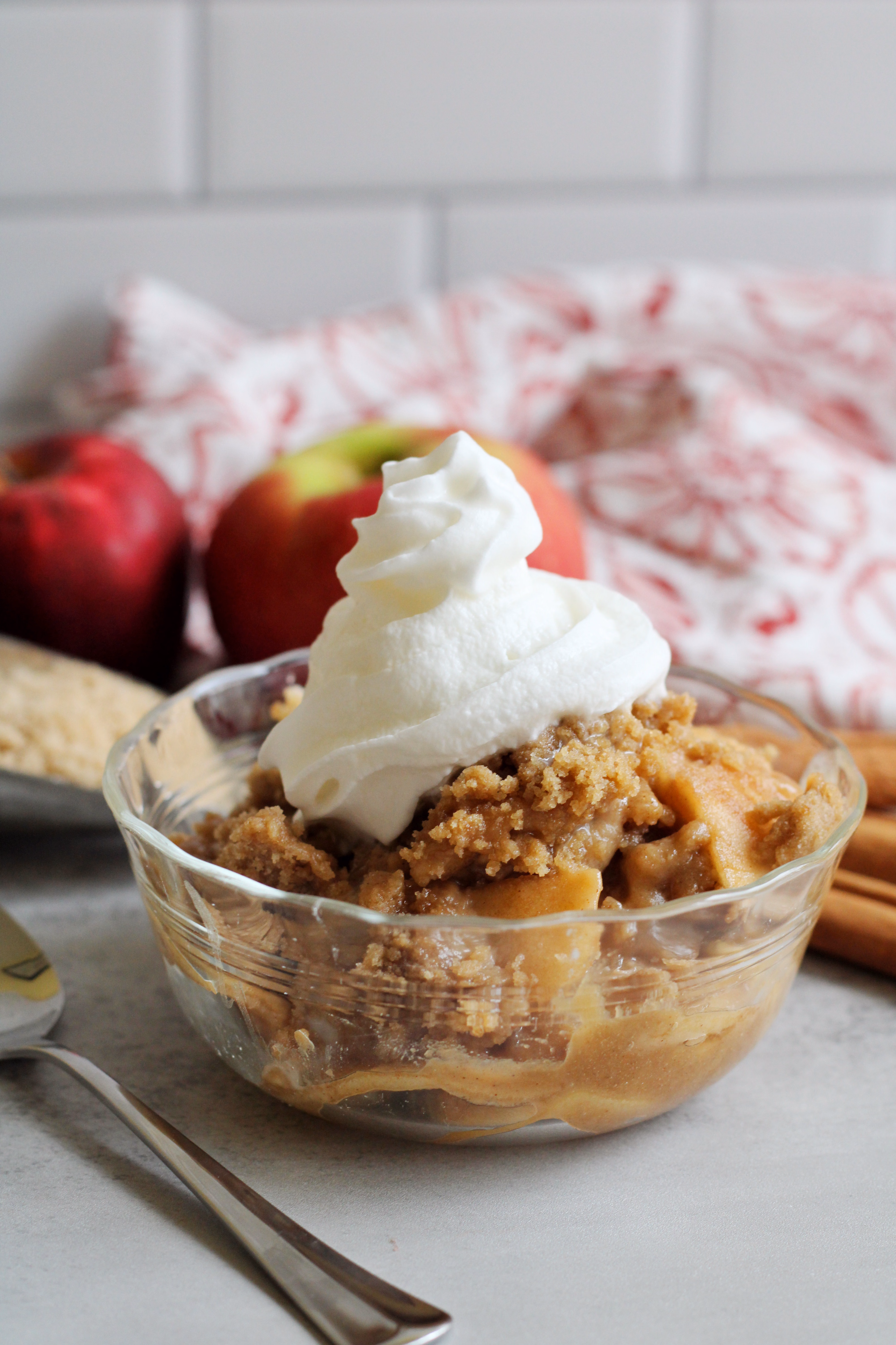 The hardest part is waiting for a bit before digging in to let the apples thicken a little. We had some with vanilla ice cream and some with whipped cream. Both highly recommended! Most definitely a new fall favorite dessert.