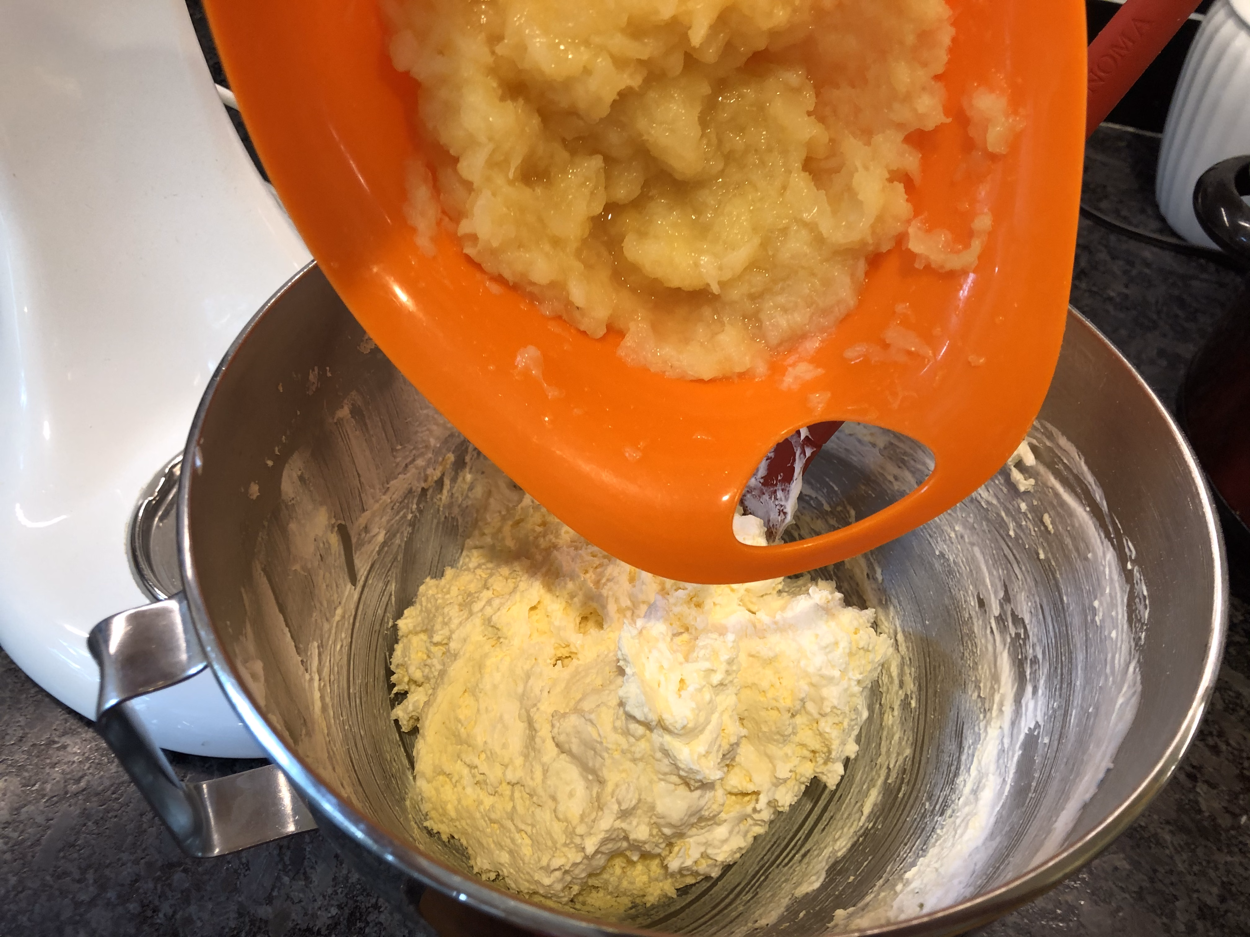 Add 1/2 cup sugar and vanilla pudding mix. Beat.