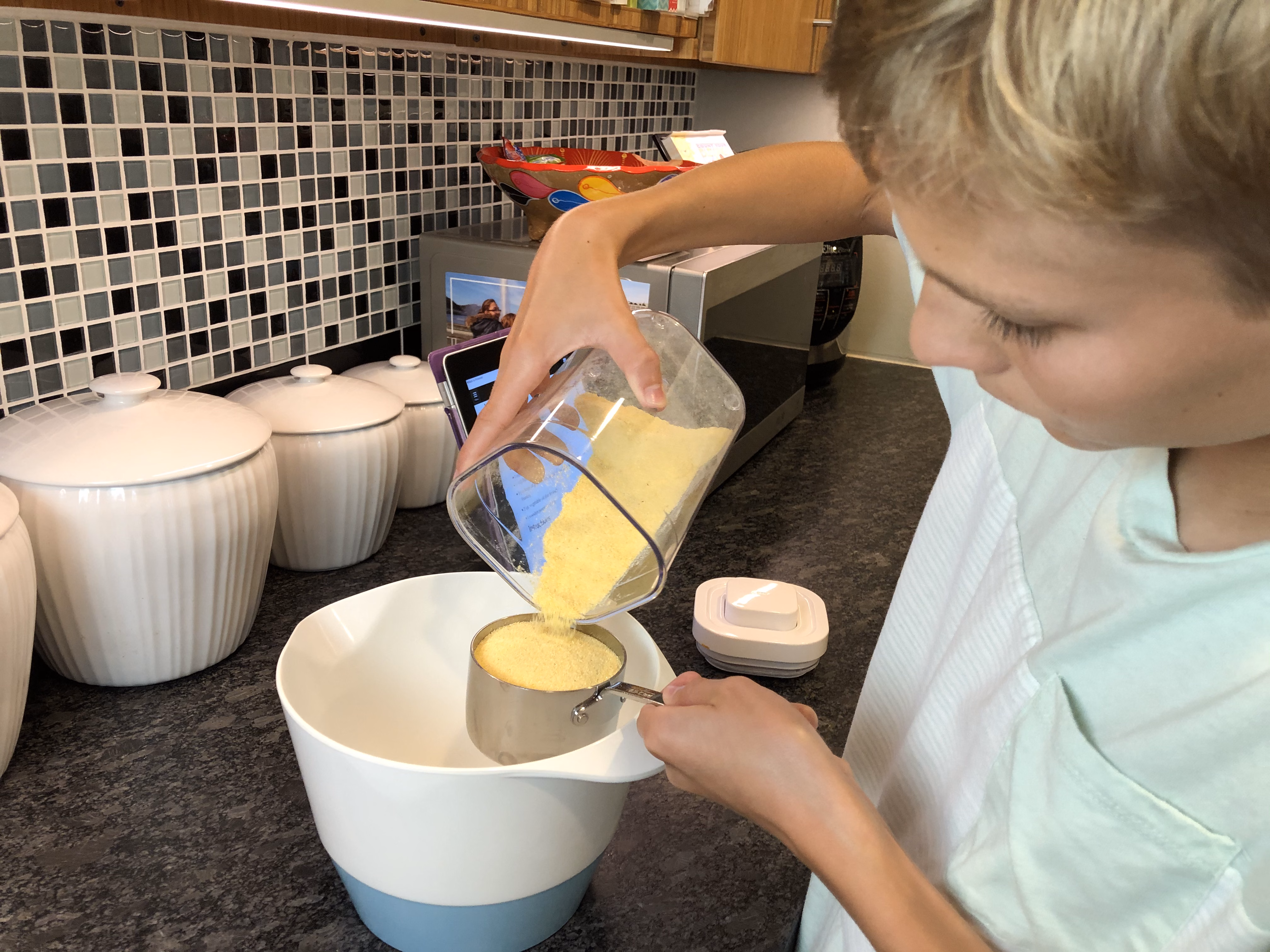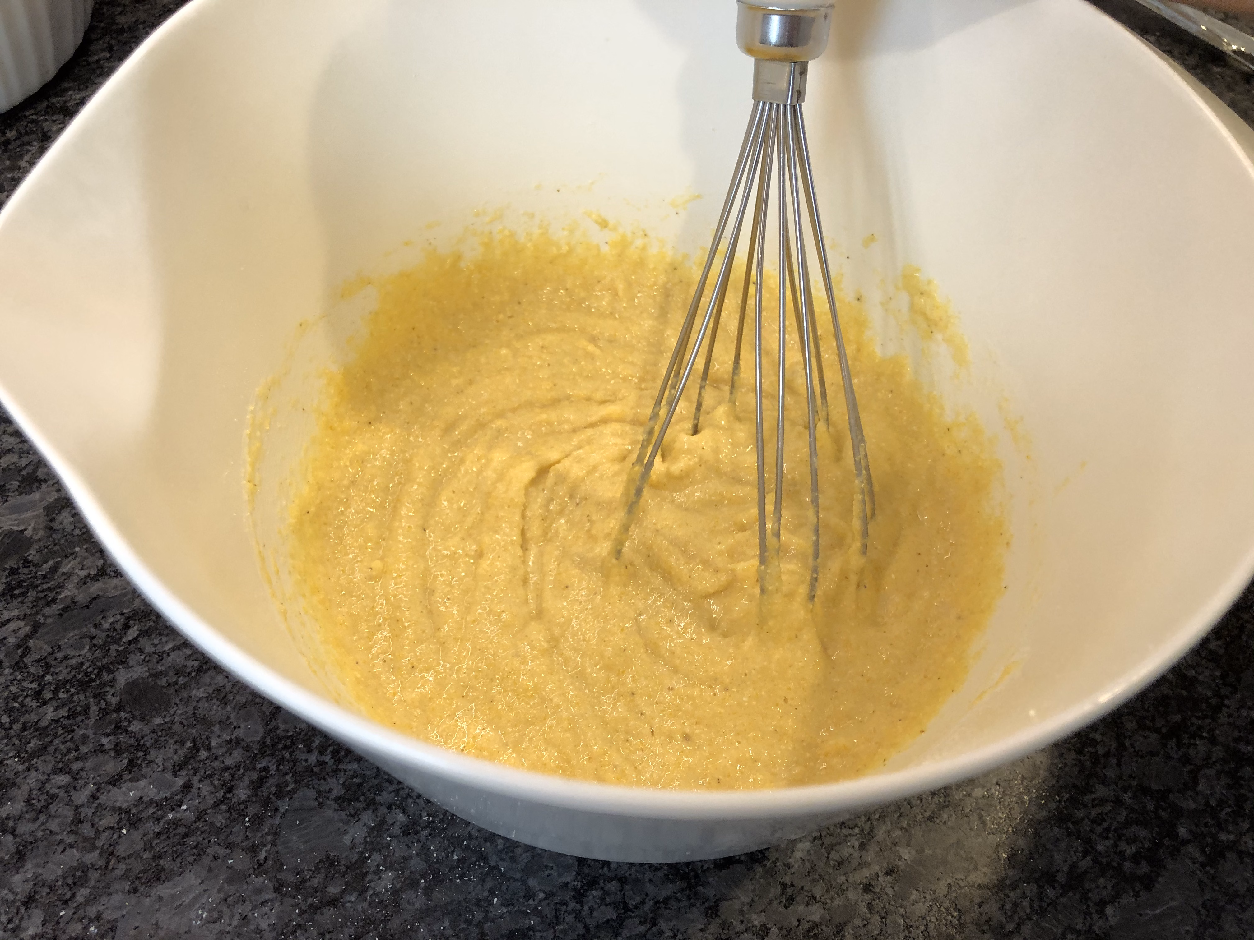 To make the batter, you will need to whisk together 1 cup cornmeal, 2/3 cup corn flour, 1/3 cup corn starch, 1 teaspoon salt........