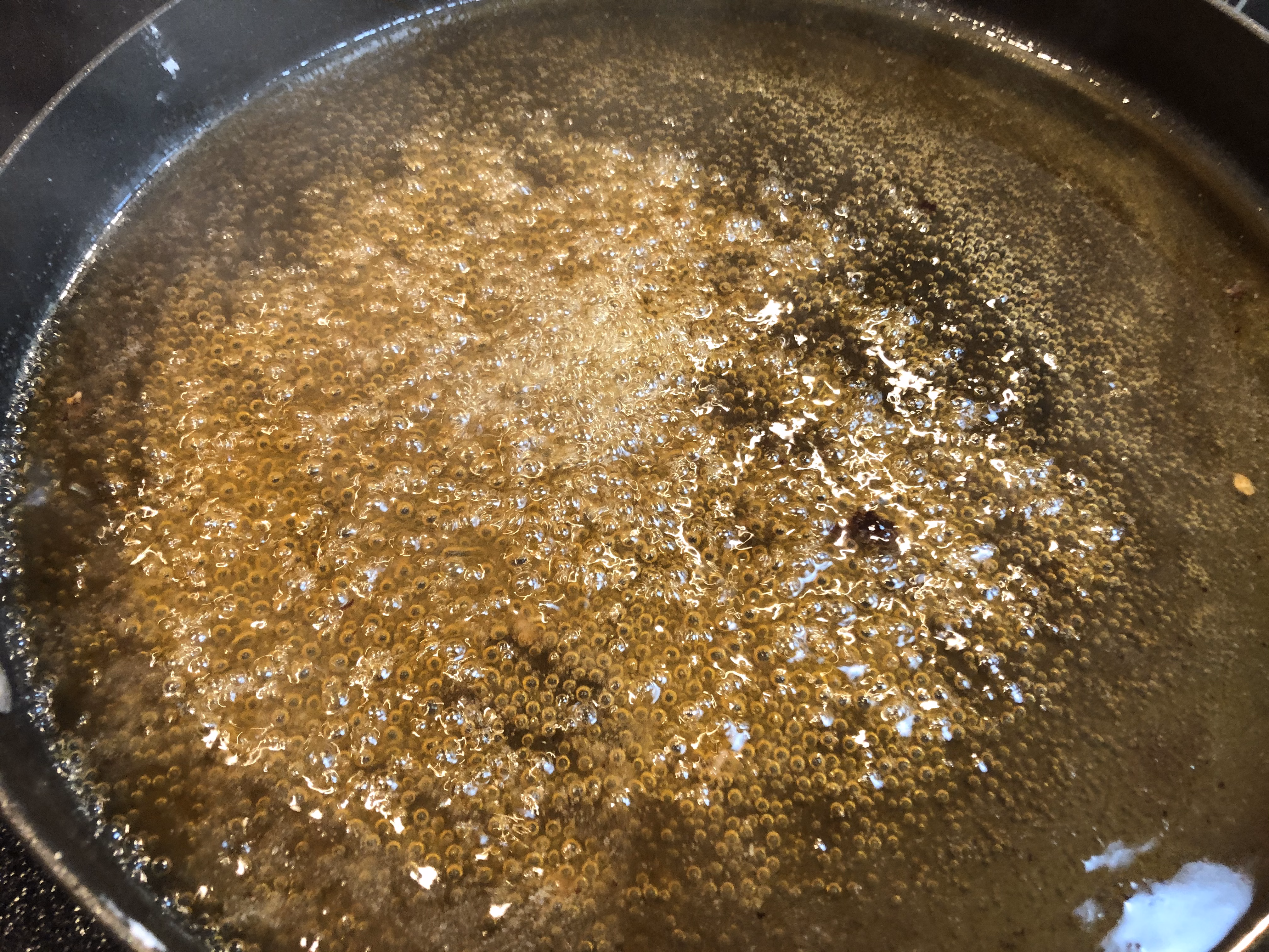Pour the lemon/honey mixture into the pan and stir, getting those browned pork bits and remaining butter combined. Let this mixture boil for a few minutes.