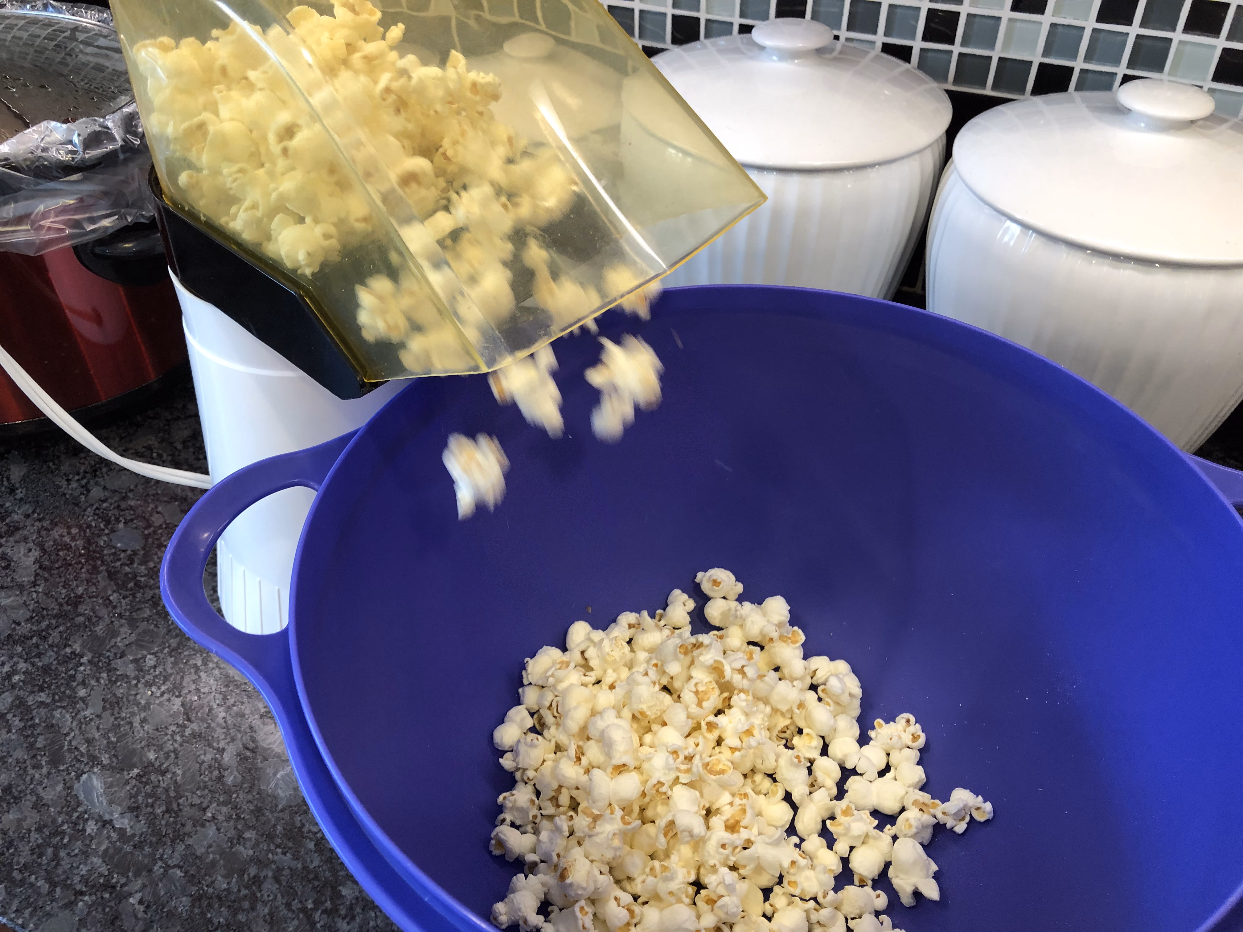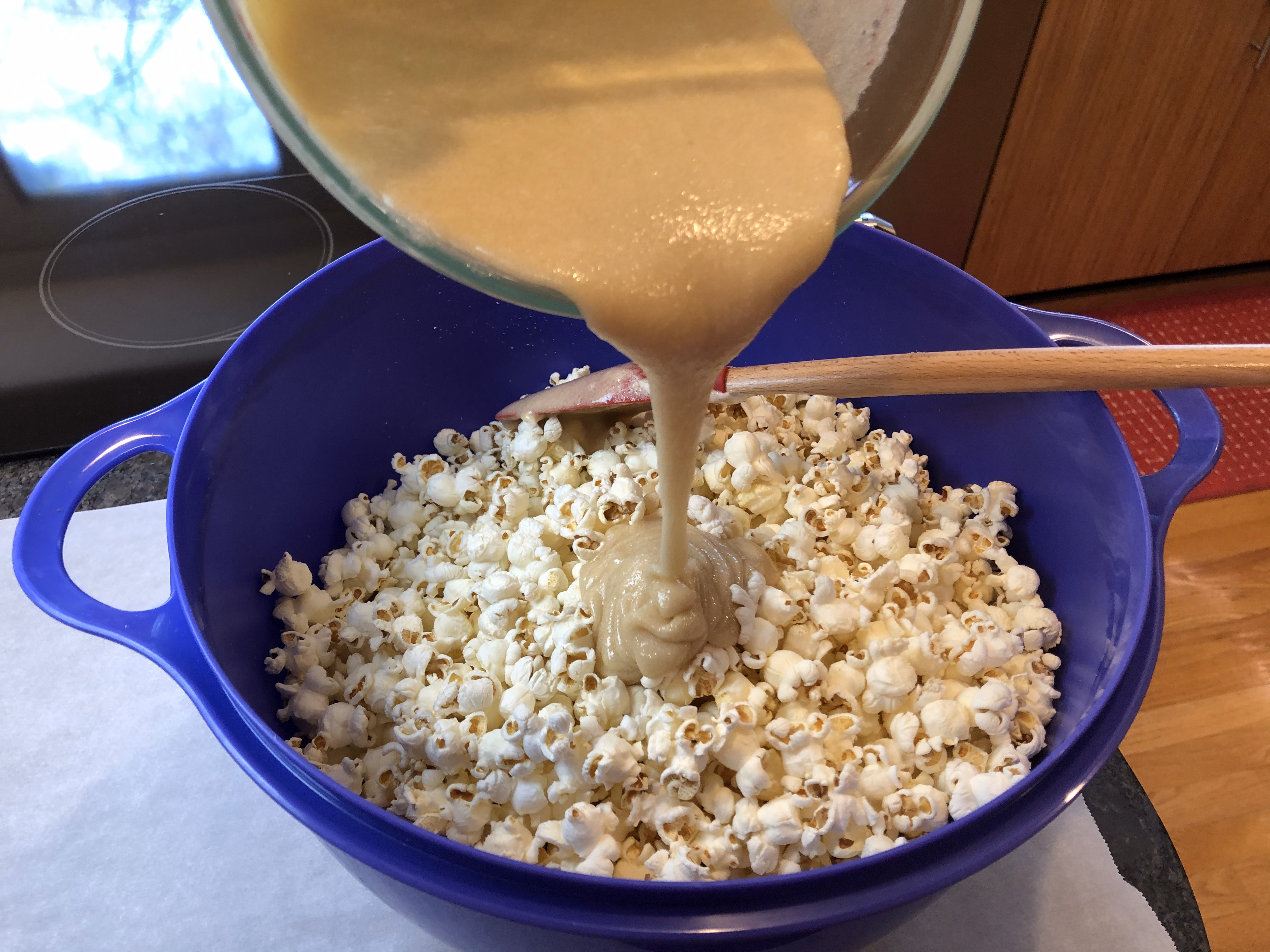 Cook you popcorn. You will need to do 1 cup kernels, which for my popping machine meant two stages of popping. Do your best to sift out the unpopped kernels.