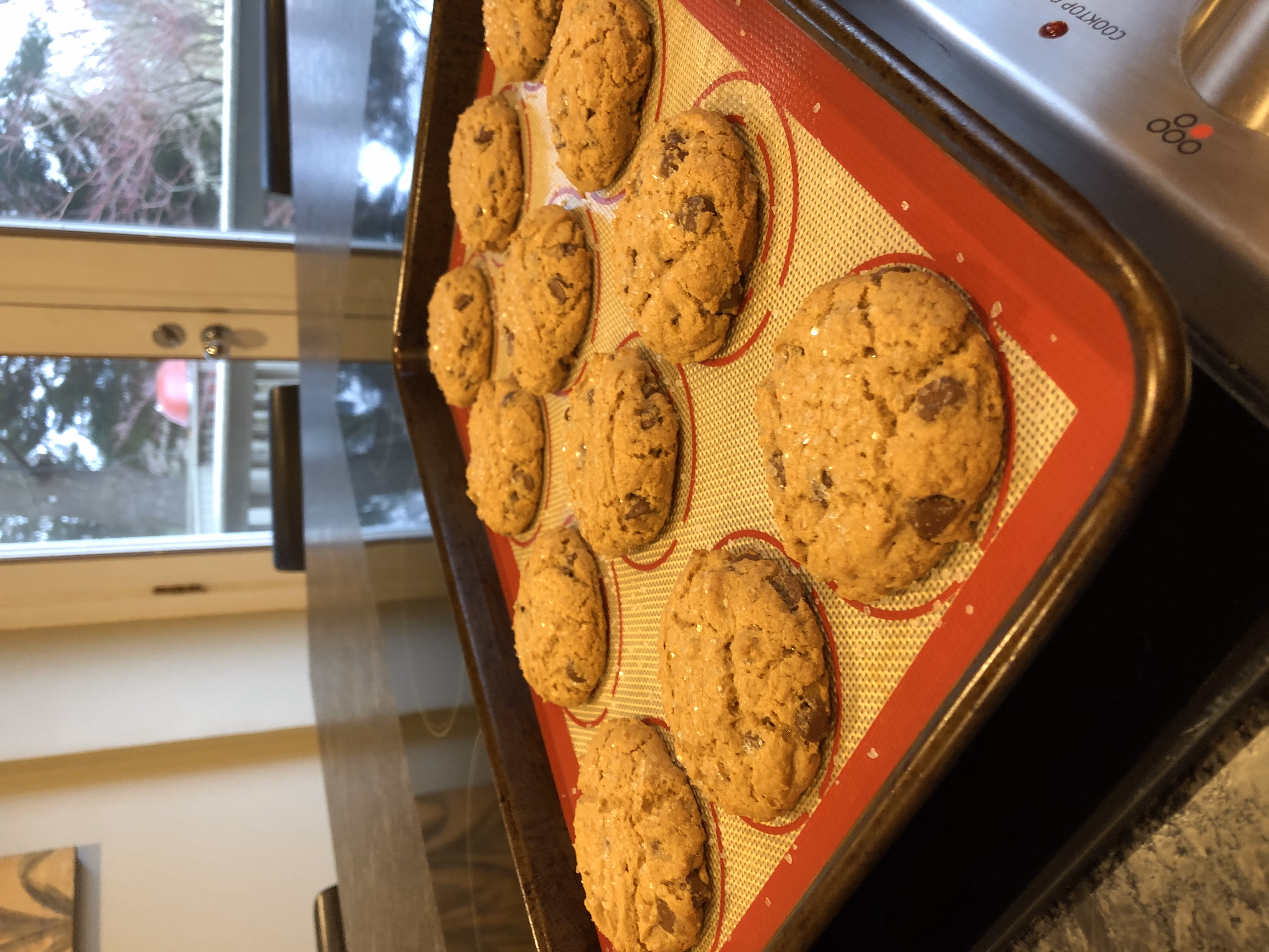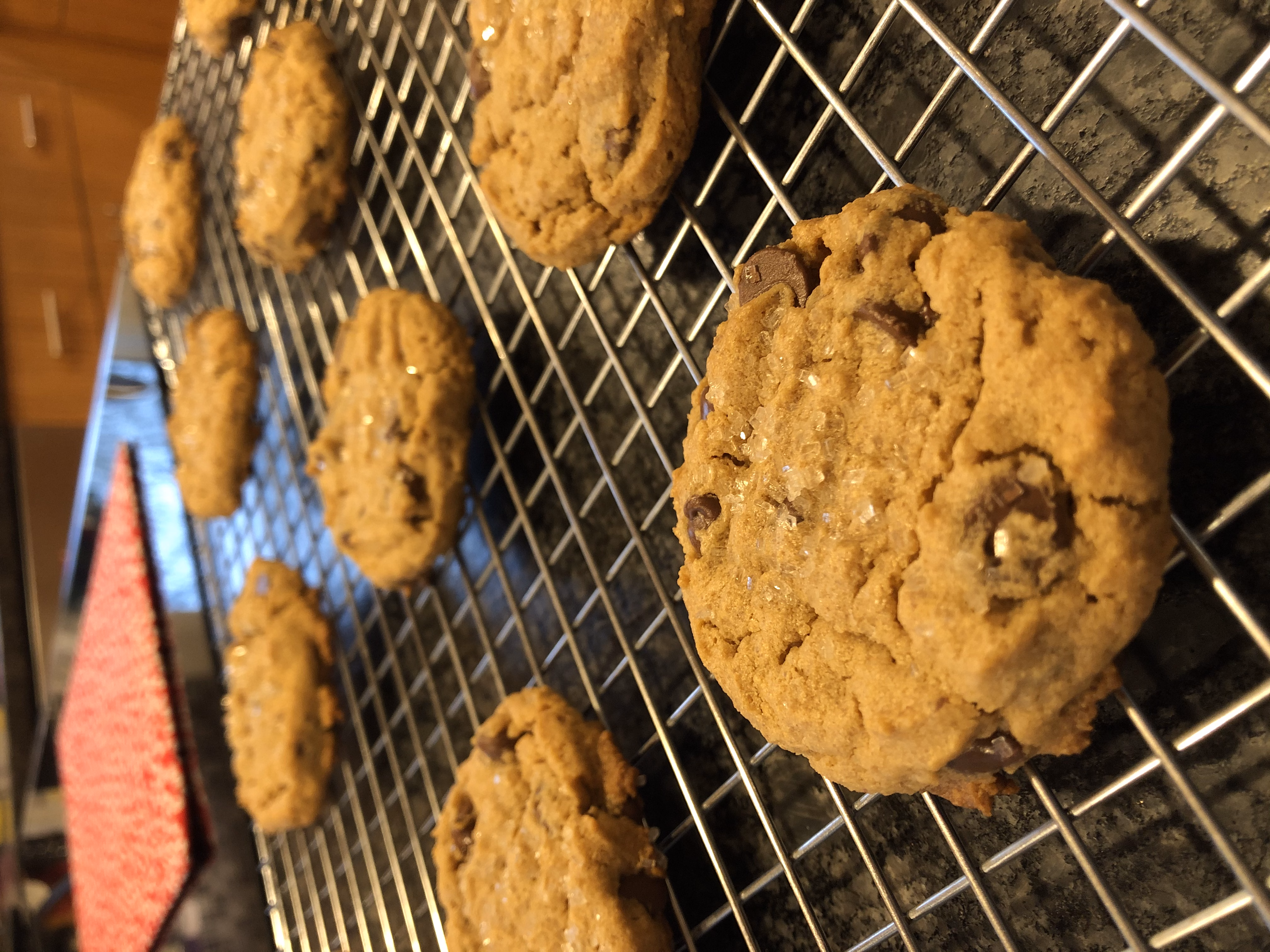 When the cookies come out of the oven, allow them to cool for a few minutes on the pan before moving them to a cooling rack.