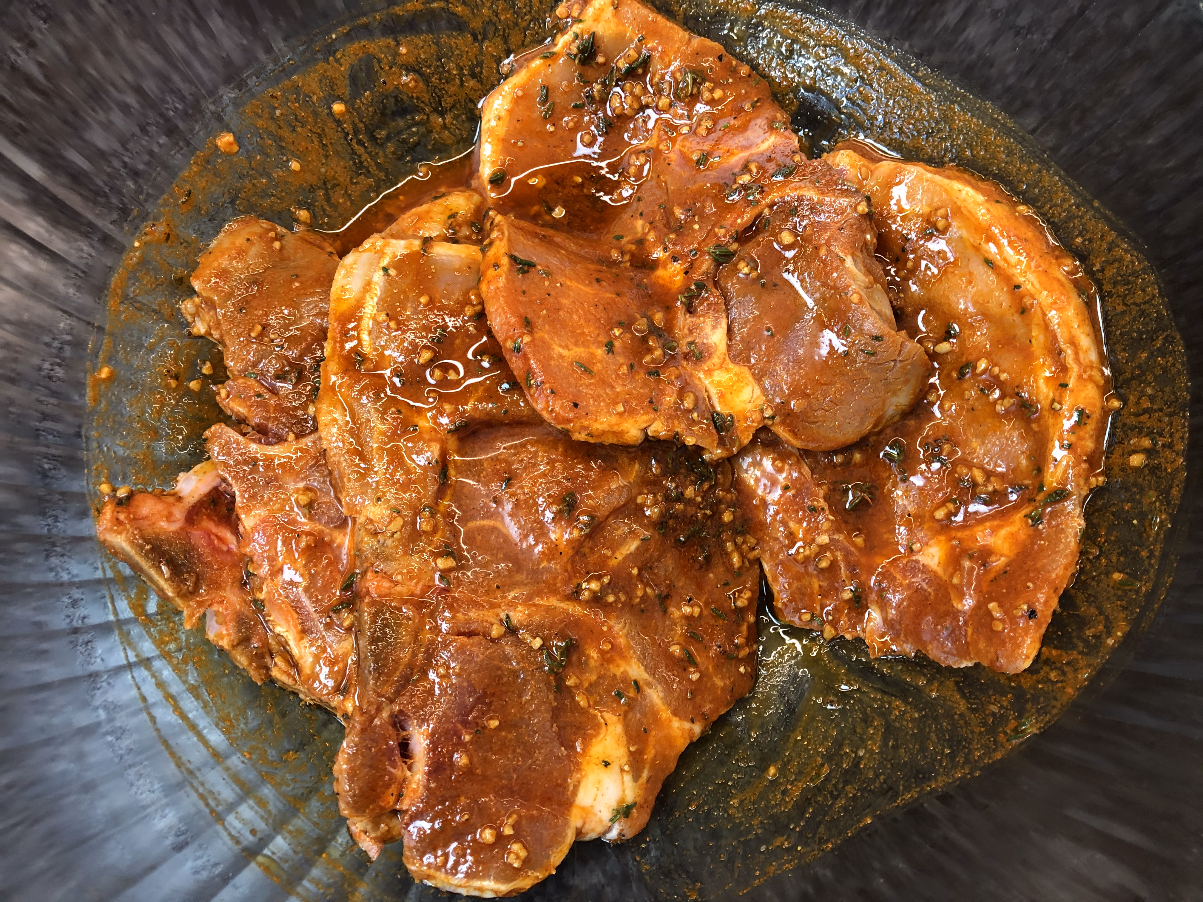 Add the pork chops and turn to coat them all in the goodness. I do this with my hands, and although it is messy, it's very effective.