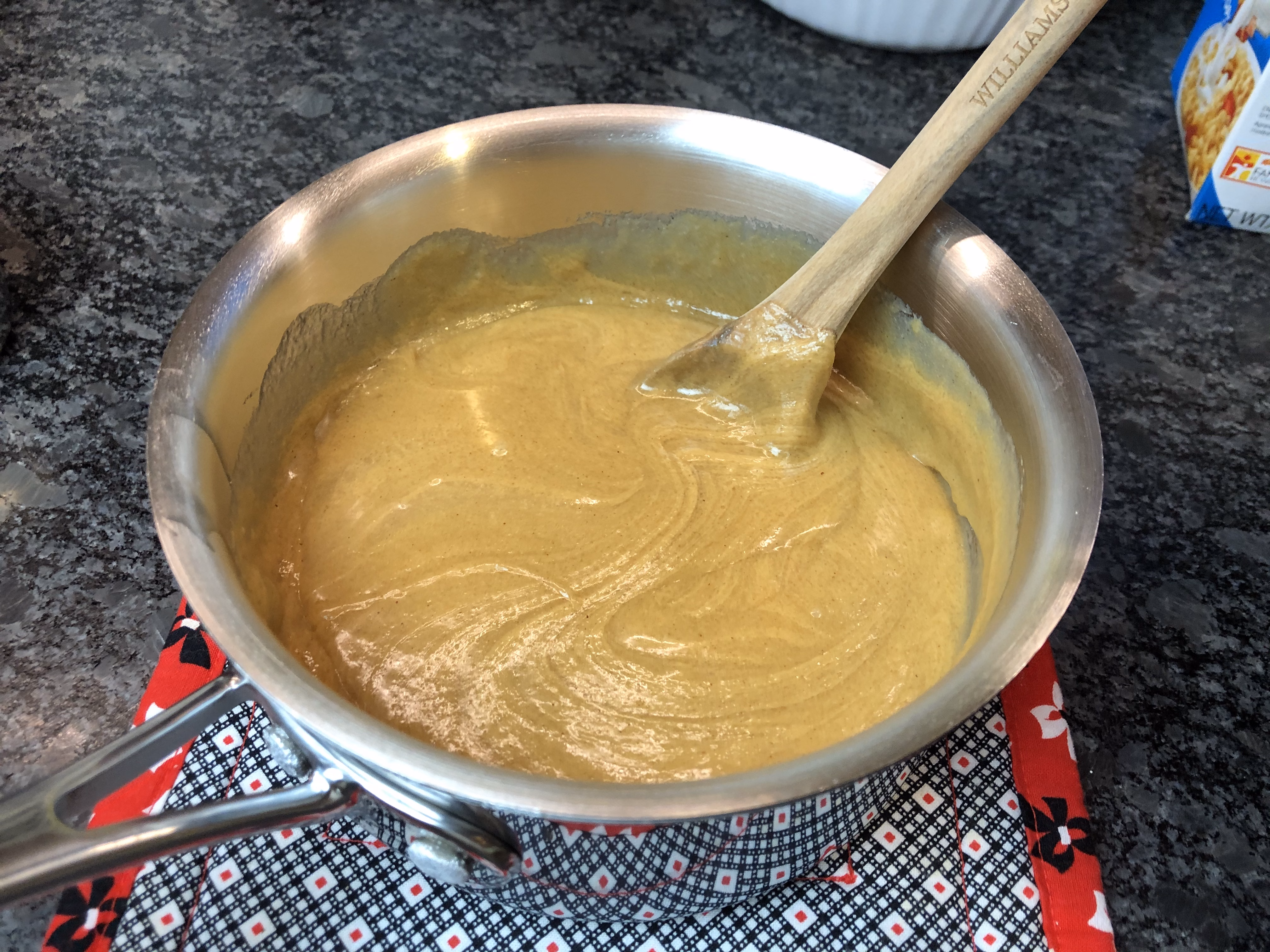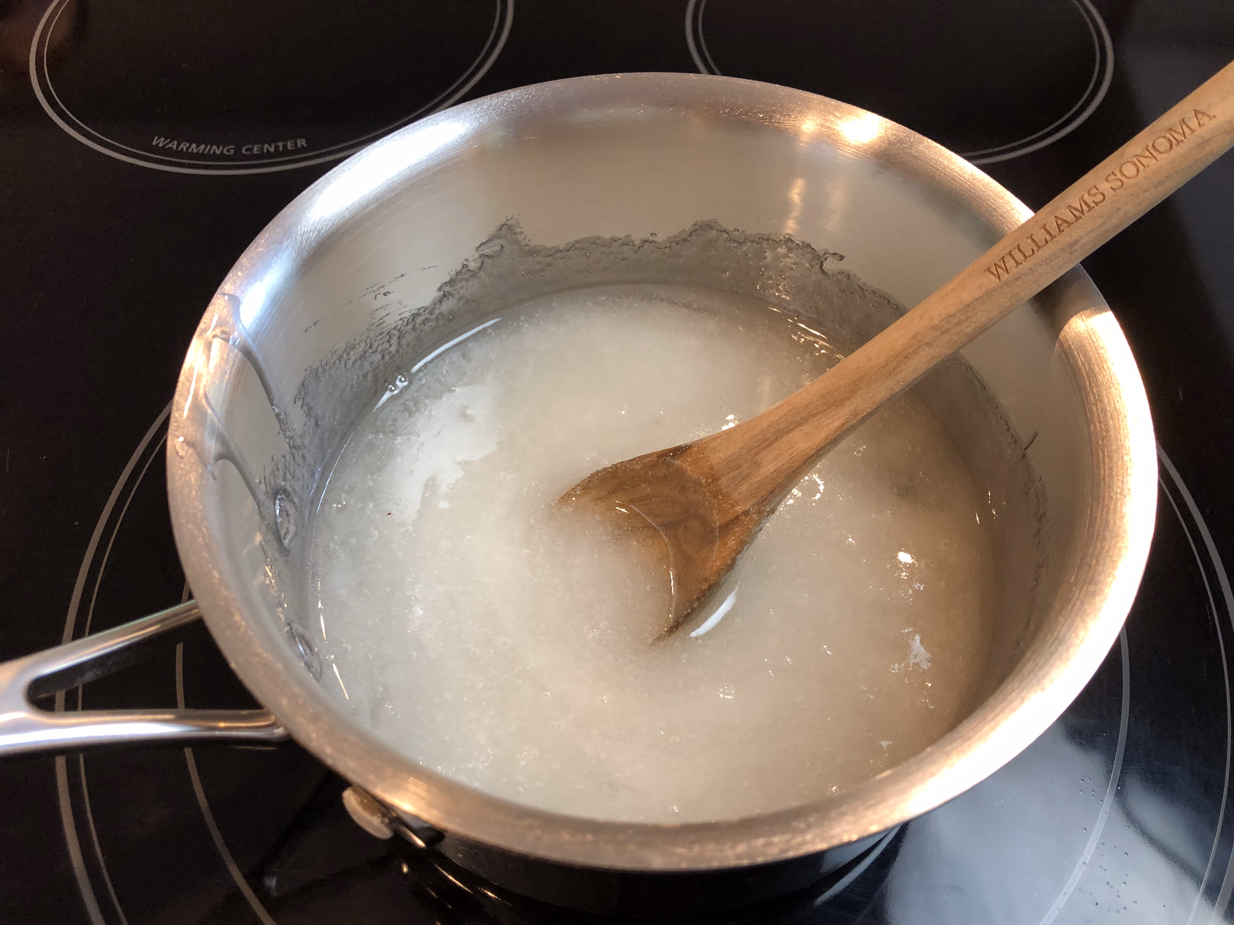 In a small saucepan, heat 1 cup corn syrup and 1 cup sugar together until sugar is dissolved and no longer grainy, but do not boil.