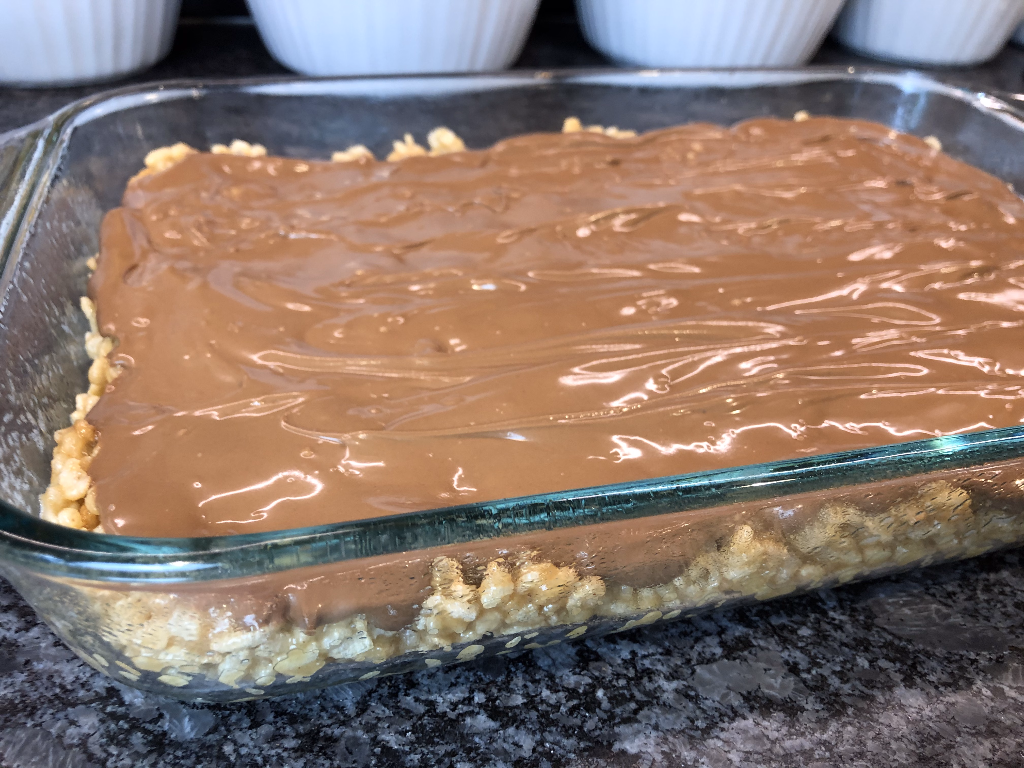 Smooth out the melted chocolate over the entire top like frosting a cake. Refrigerate the bars until the chocolate is set.