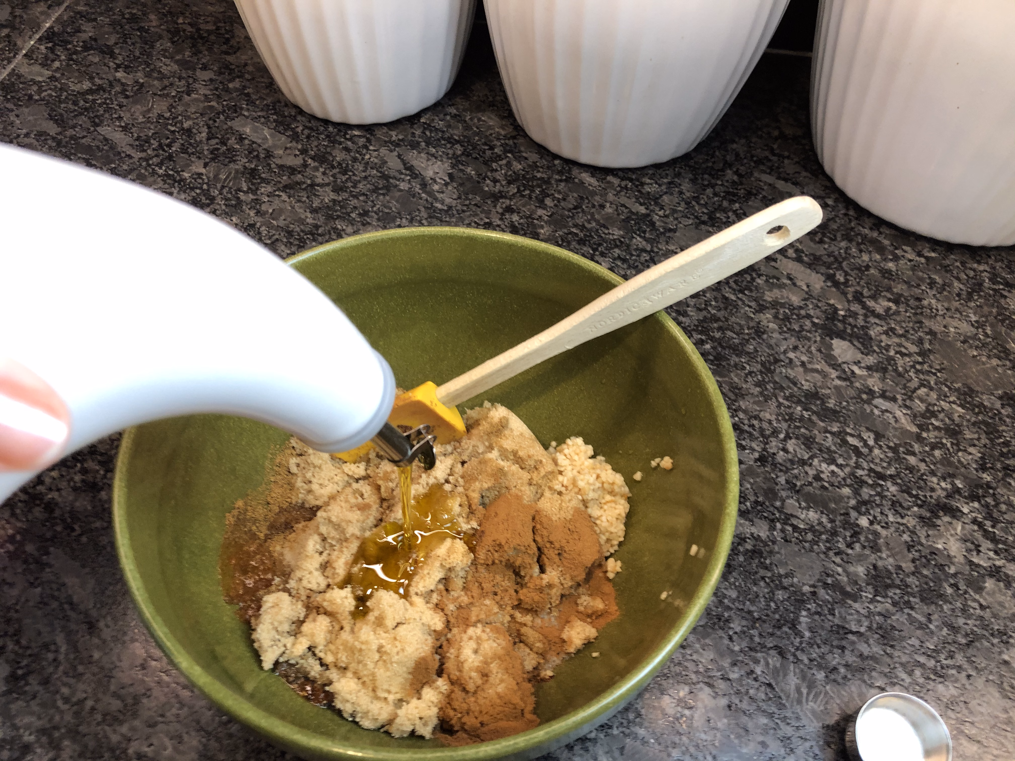 The paste will look like this. Yes, it will smell amazing, and you will especially notice the sweetness of the brown sugar and cinnamon together. DO NOT LICK SPOON. Haha.