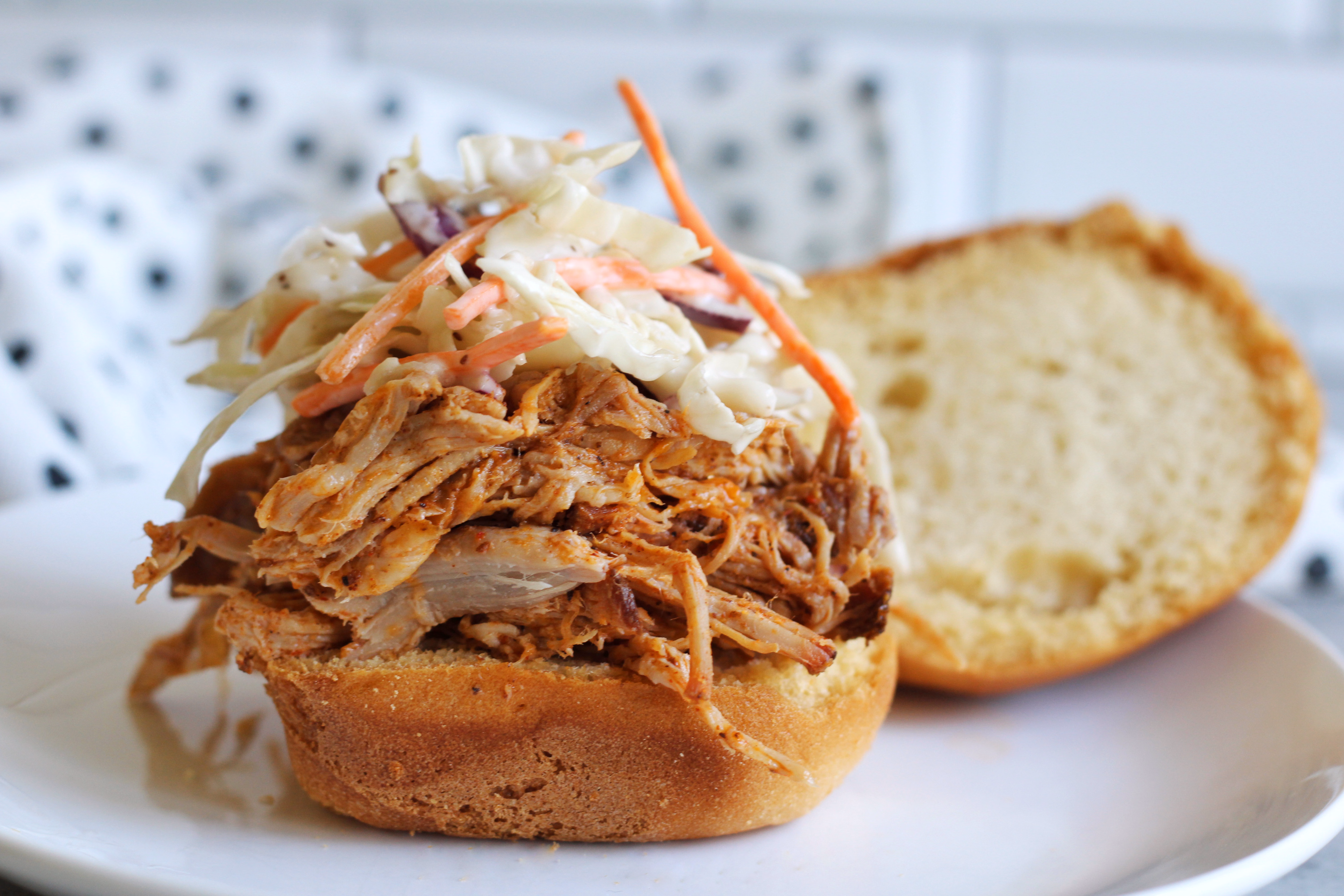 This pork has the BEST flavor. We usually end up using all of the BBQ sauce mixed with the pork, and it keeps it moist and flavorful.