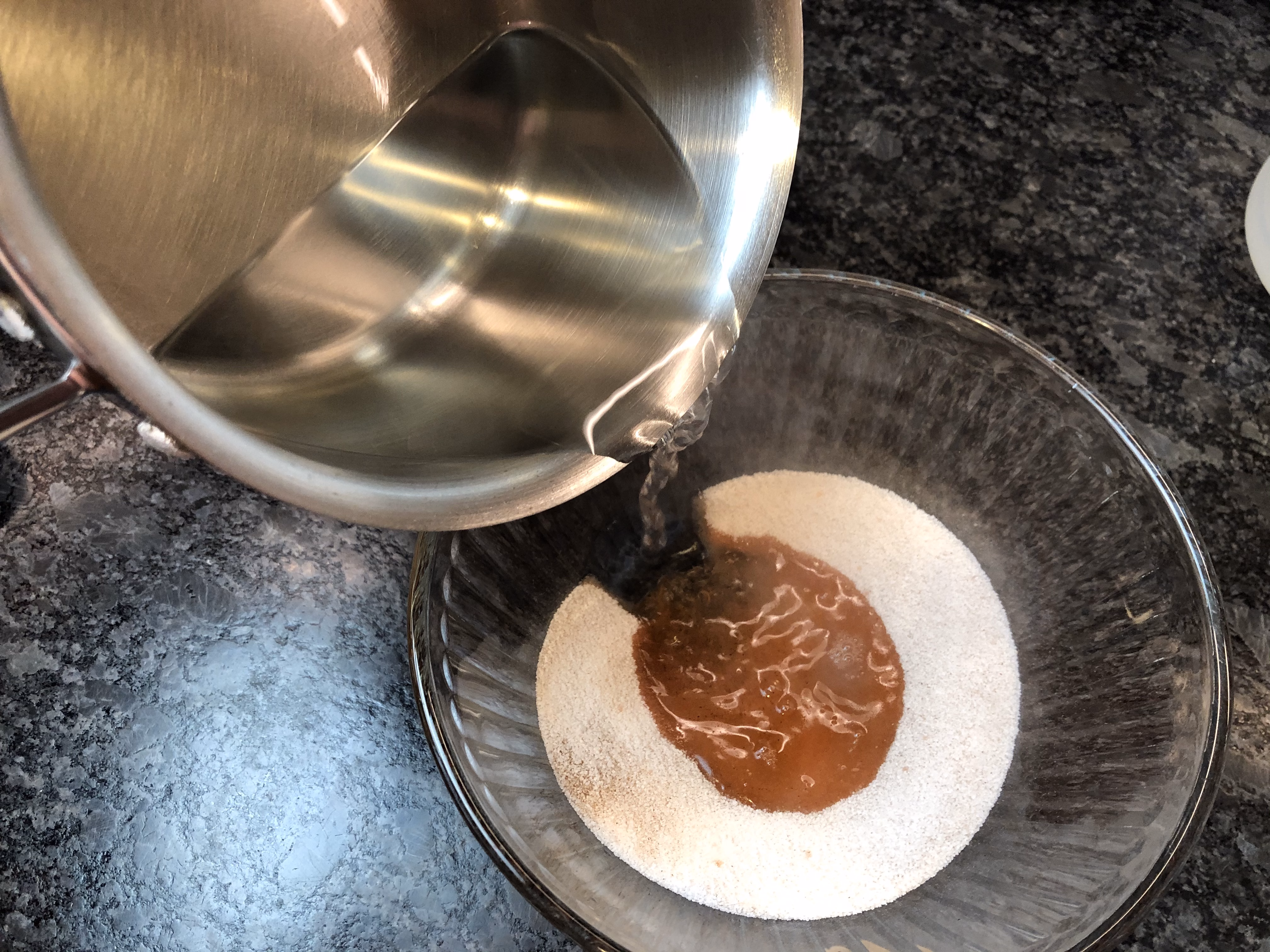 In a small saucepan, combine the water, sugar, and vinegar. Bring to a boil. In a glass bowl combine the gelatin, cinnamon, and ground cloves. Pour boiling water over gelatin mixture. Stir until gelatin is dissolved.