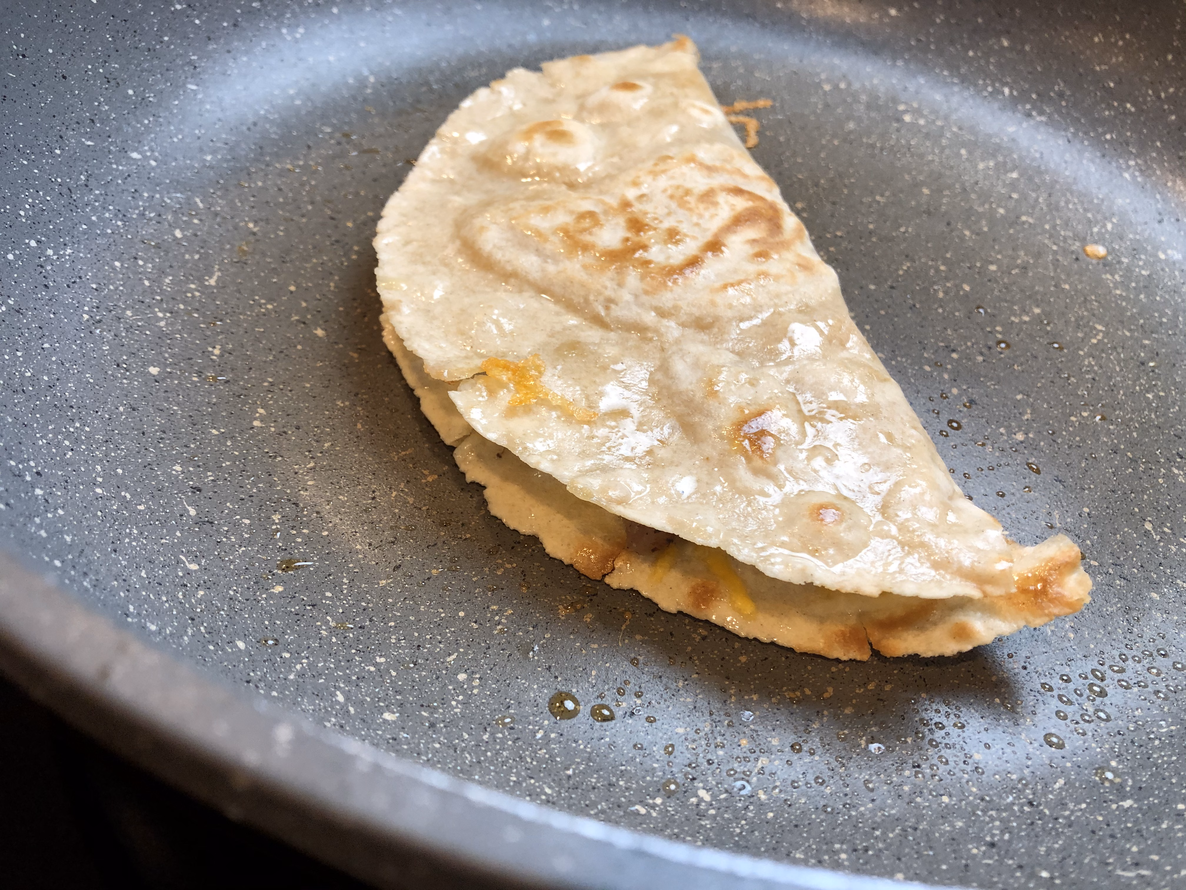 Once the cheese is starting to melt, fold the tortilla in half and cook a few minutes on each side until the tortilla browns a little and the cheese is completely melted.