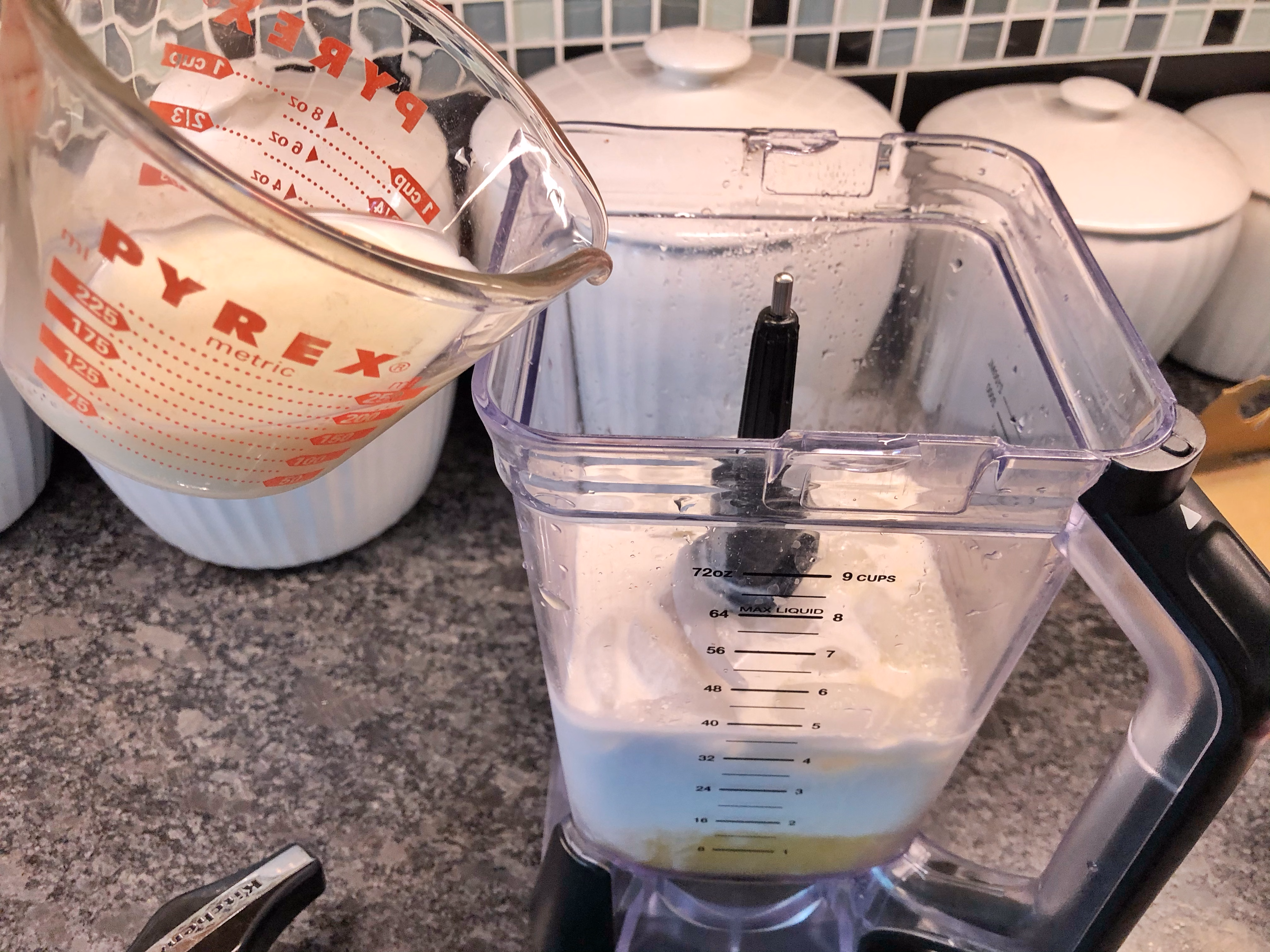 .... and 1/2 cup milk. Add ice to top of liquid. Blend until slushy.
