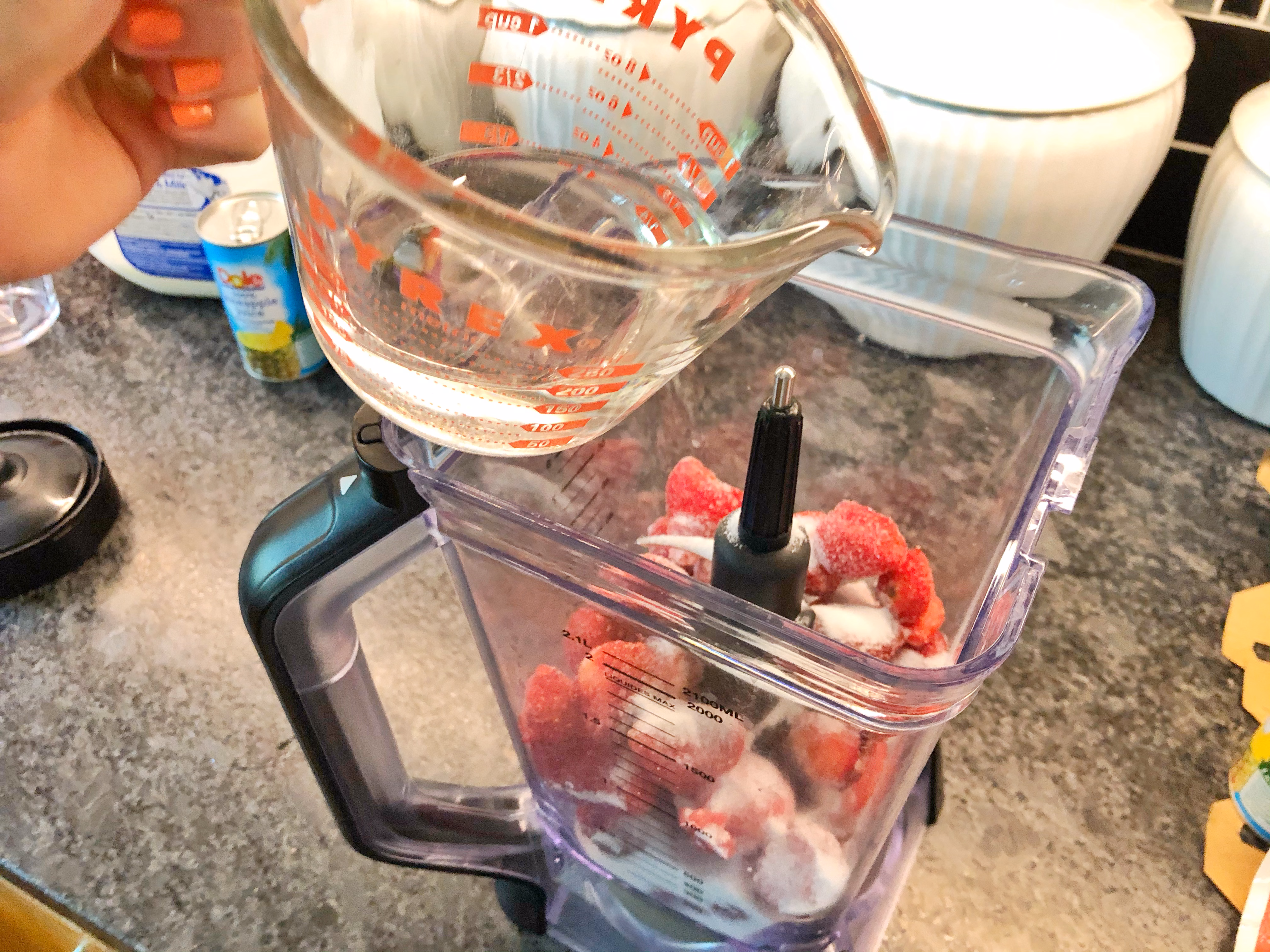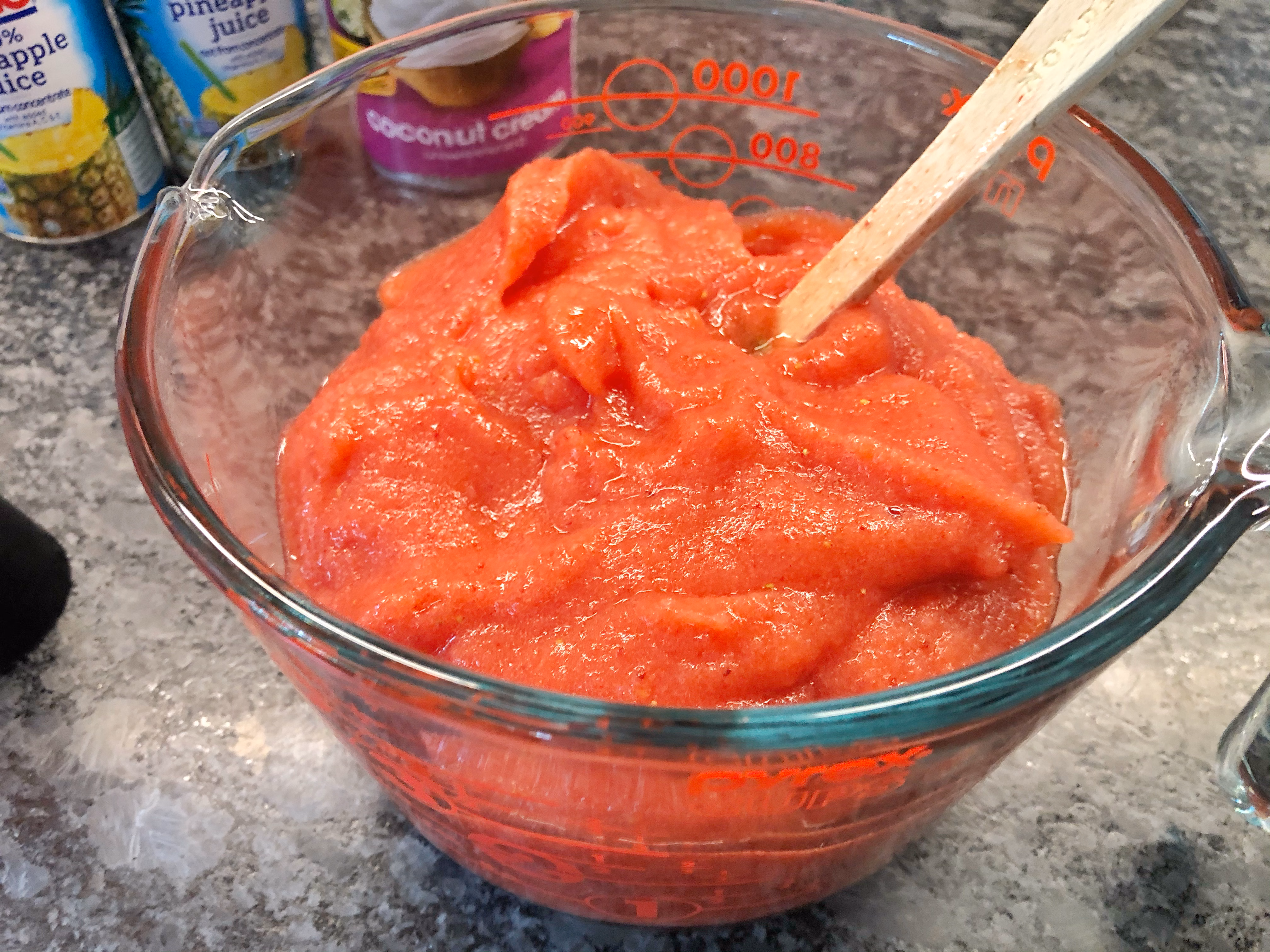 After cleaning the blender, add 2 cans pineapple juice (about 2 cups).....