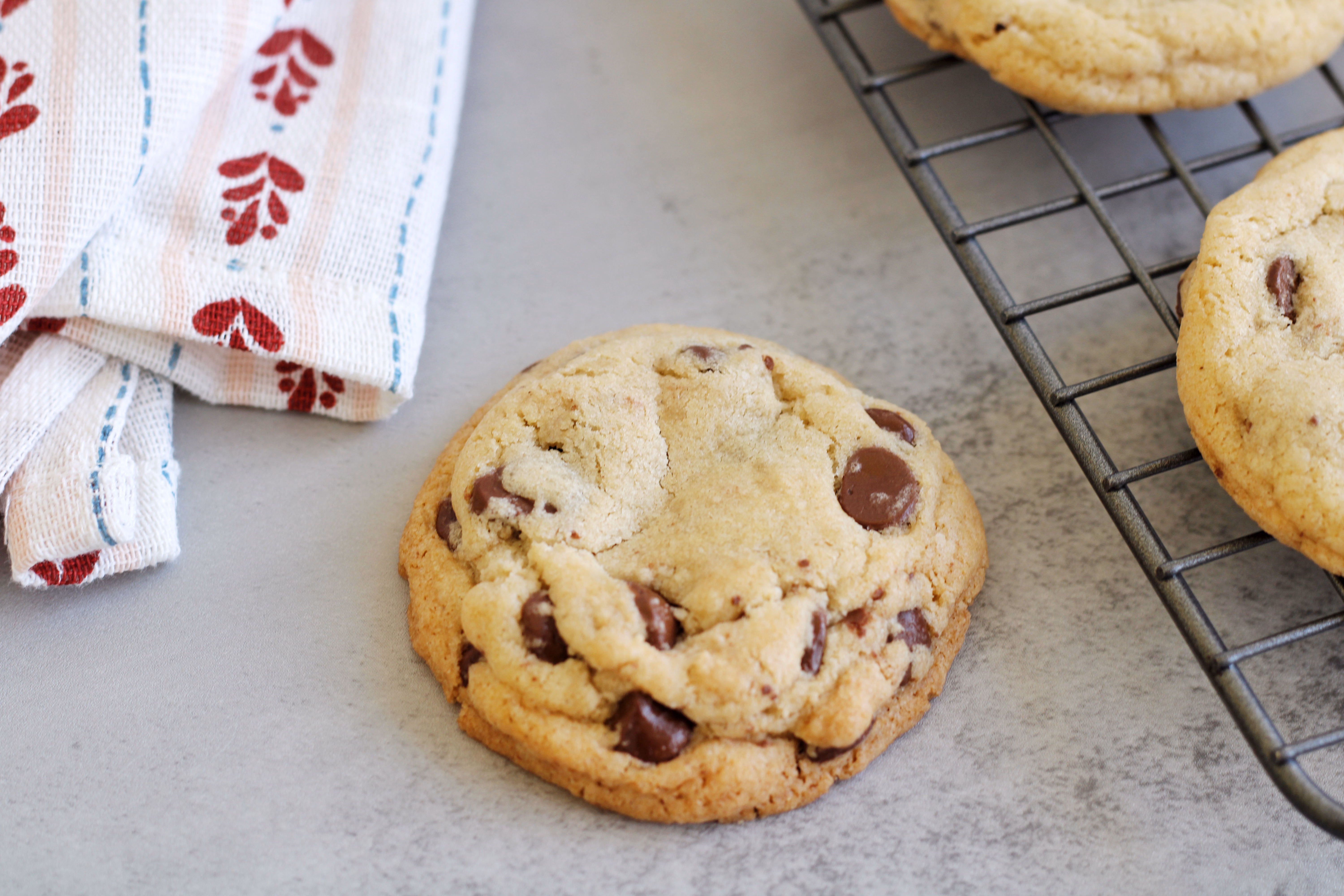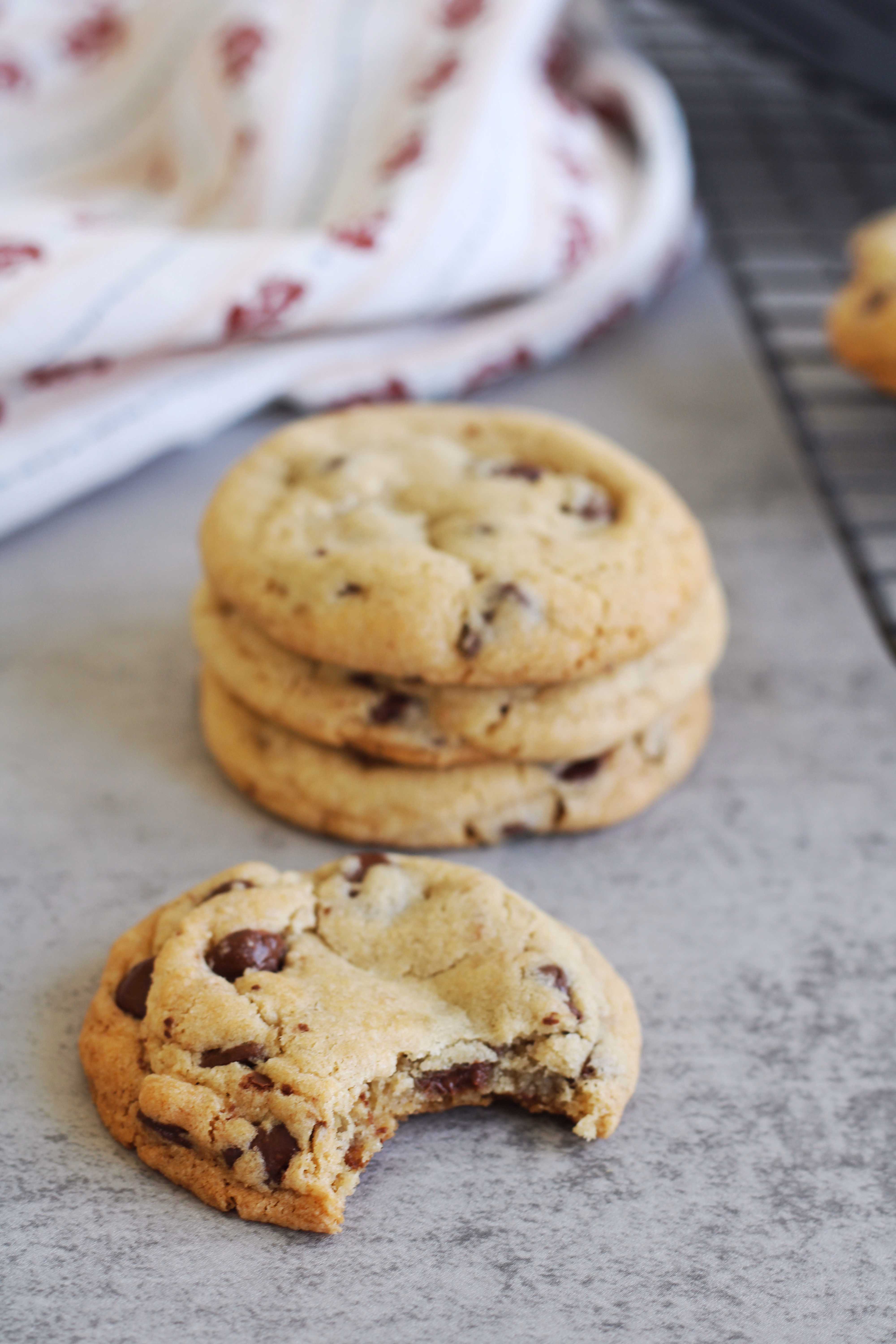 One bite and you will be hooked. They are a good classic chocolate chip cookie with the perfect texture. So so good!