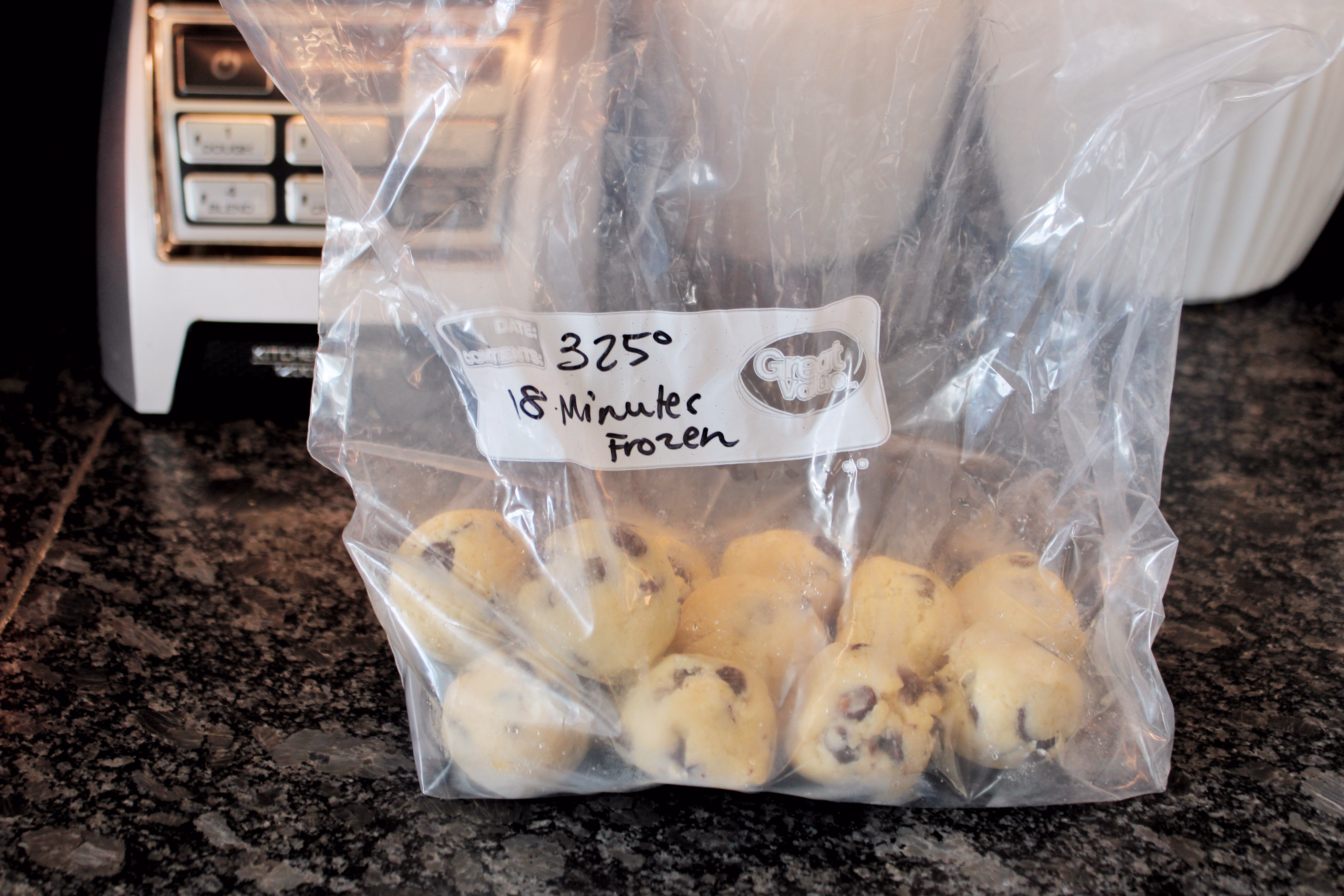 FREEZER INSTRUCTIONS: Freeze mounds of dough on baking sheet until hard, then put in zipper top freezer bag and keep frozen for up to a month. Bake frozen dough for 18 minutes.
