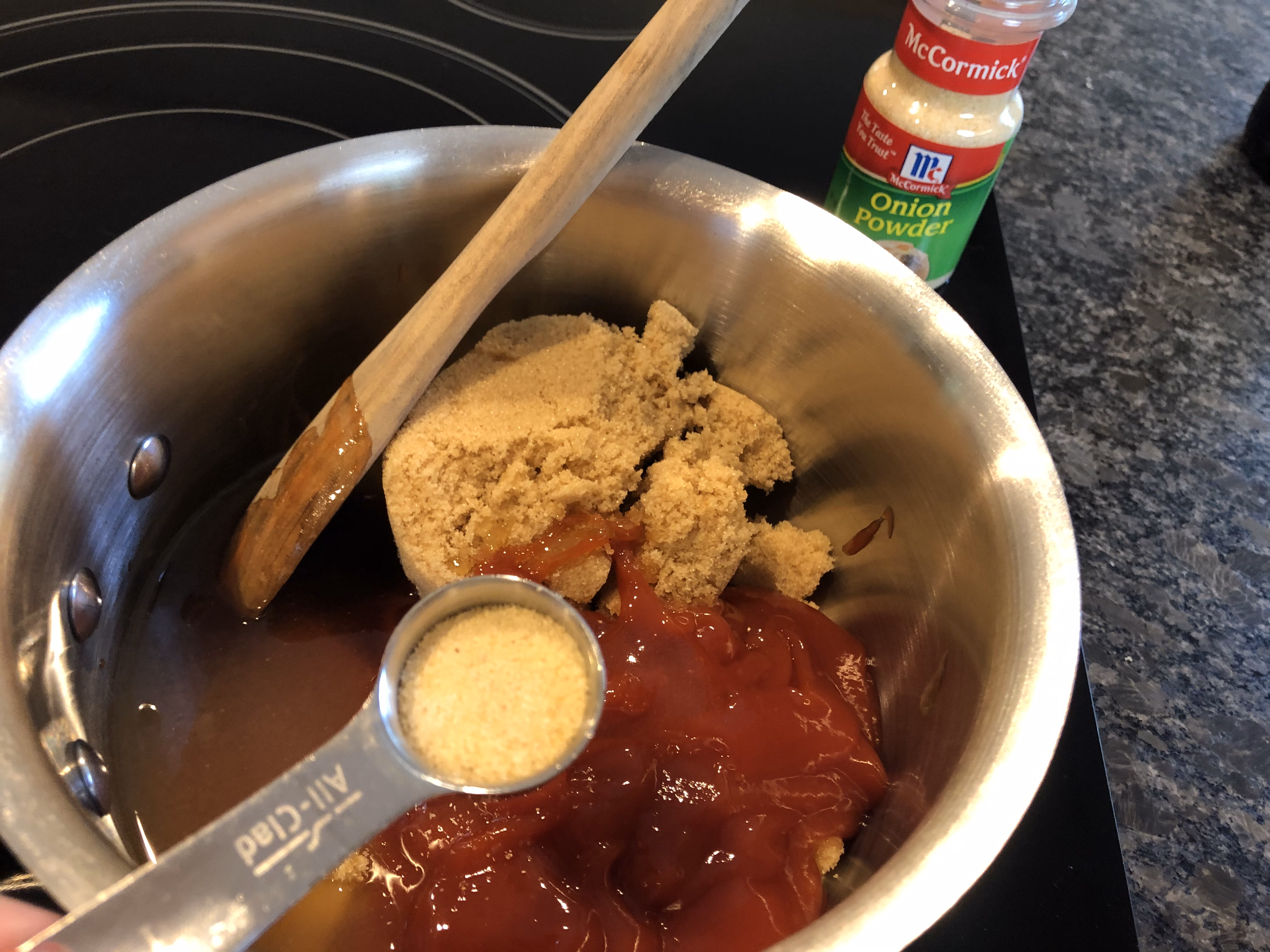 In a saucepan, combine 3/4 cup ketchup, 3/4 cup brown sugar, 1 tablespoon BBQ sauce, 1/4 cup honey, 1/2 teaspoon onion powder.....