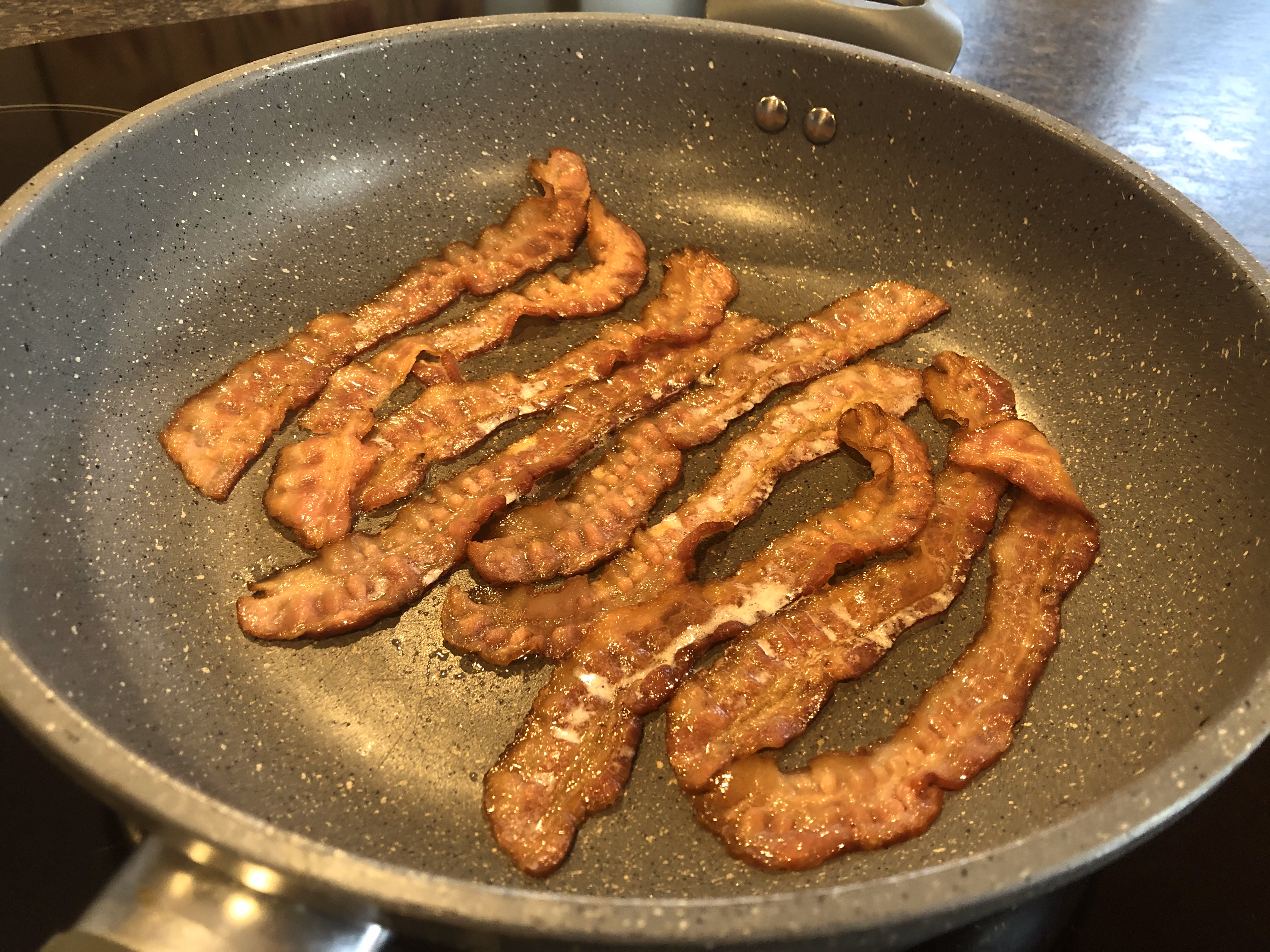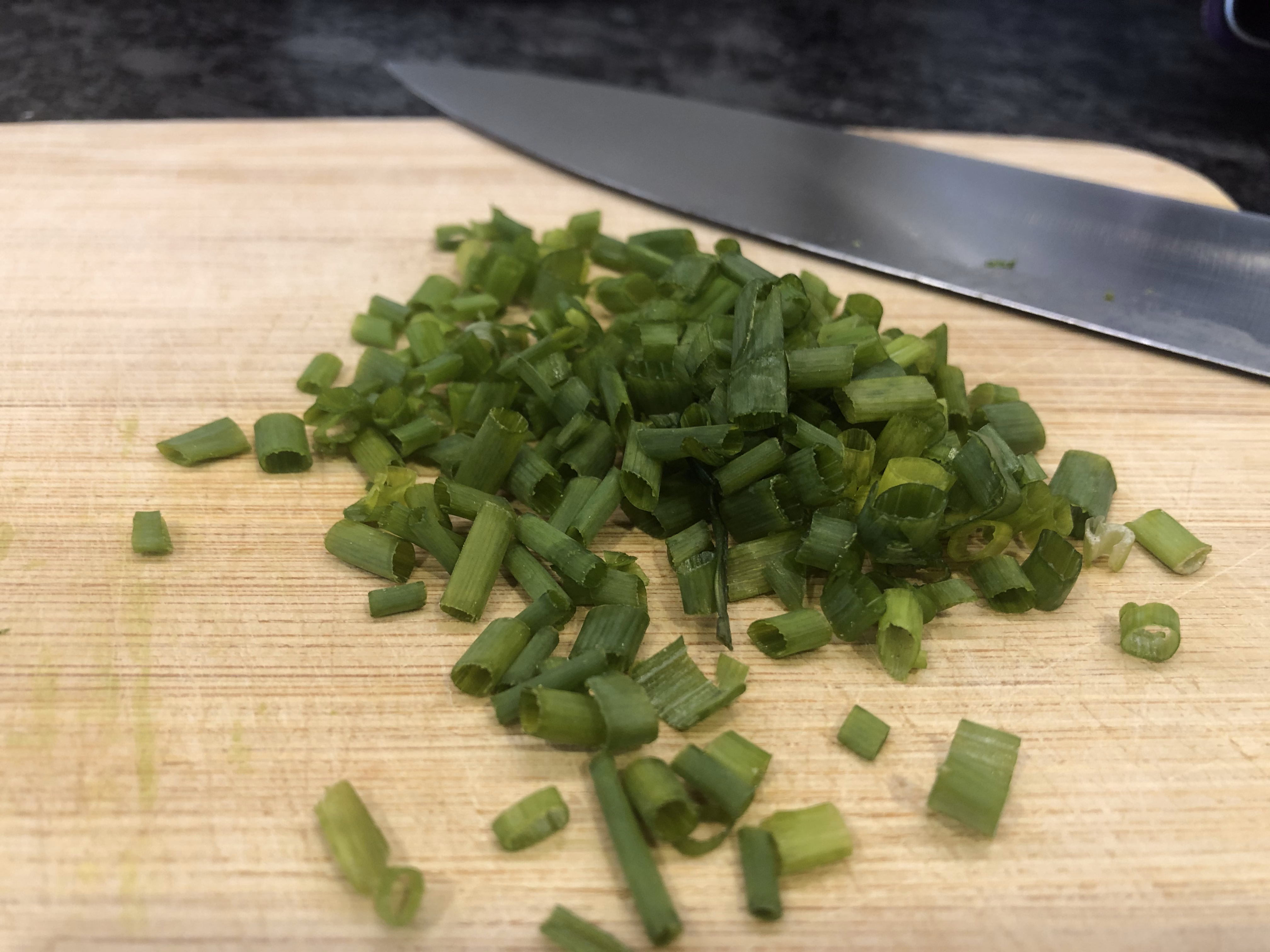 Cook up some bacon, then drain on paper towels and chop into pieces. I love to use kitchen shears to cut bacon!