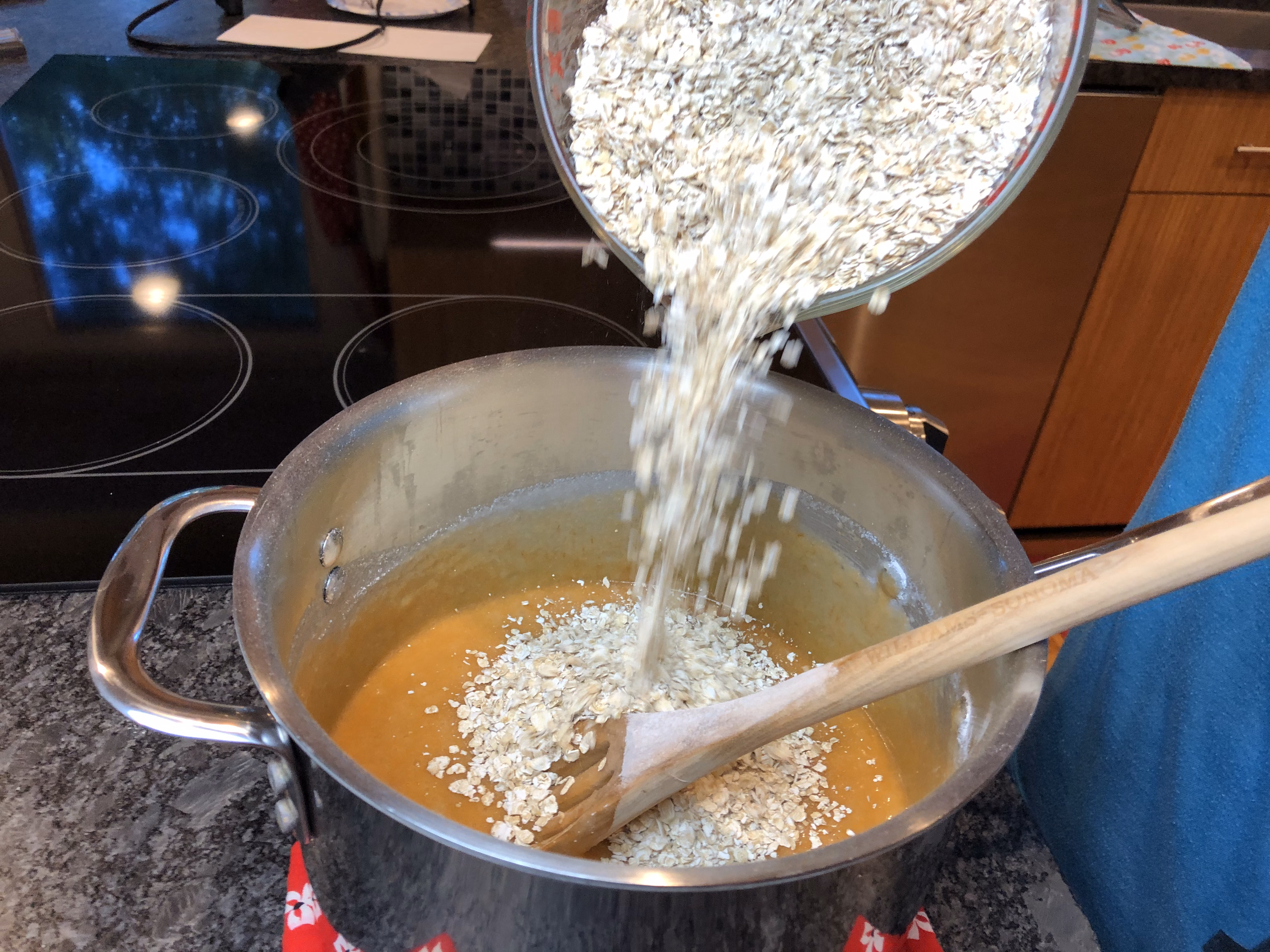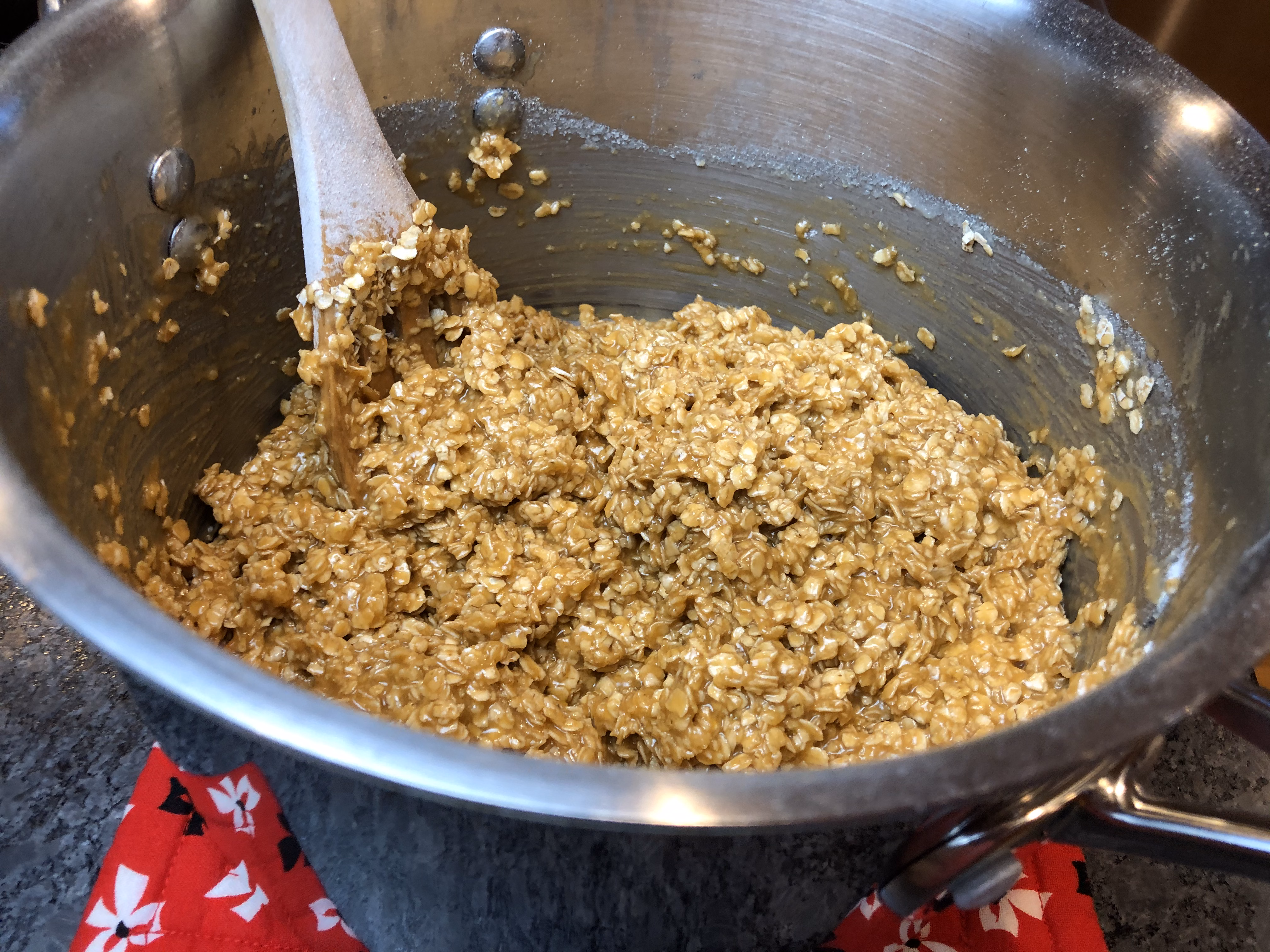 Stir until oats are evenly covered. Allow to cool a few minutes.