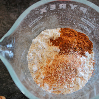 One thing I changed from the newspaper recipe was using butter instead of shortening. Butter just adds a better flavor, but you are welcome to use shortening if you prefer. In a mixing bowl, beat 1/4 cup softened butter and 1 cup of sugar until fluffy, then add the egg and beat well. In a separate bowl, whisk together 1 cup GF flour, 1 teaspoon baking soda, 1/2 teaspoon salt, 1 teaspoon cinnamon, and 1/2 teaspoon freshly ground nutmeg. It doesn't have to be freshly ground, but once you try it, you can't go back!