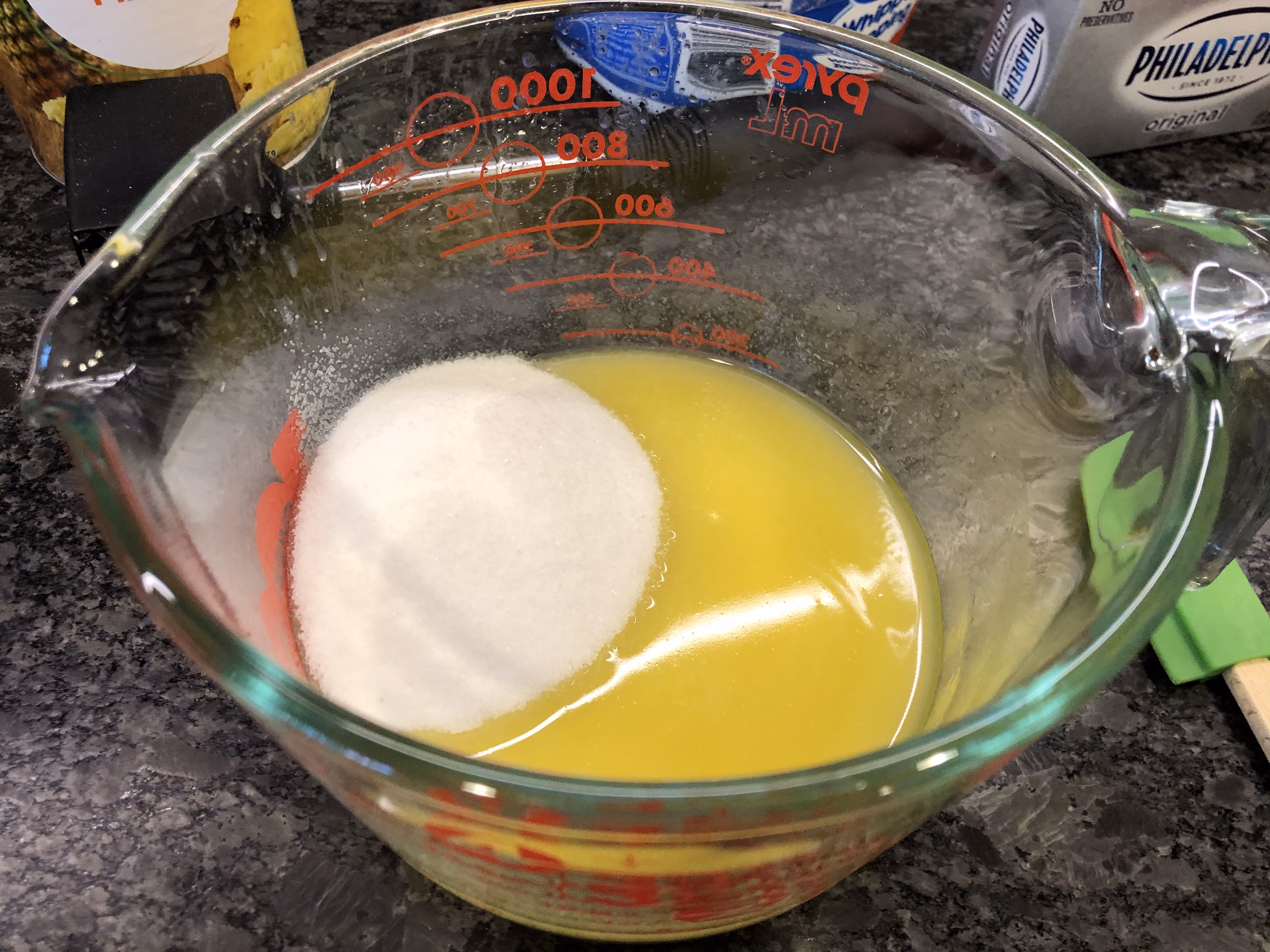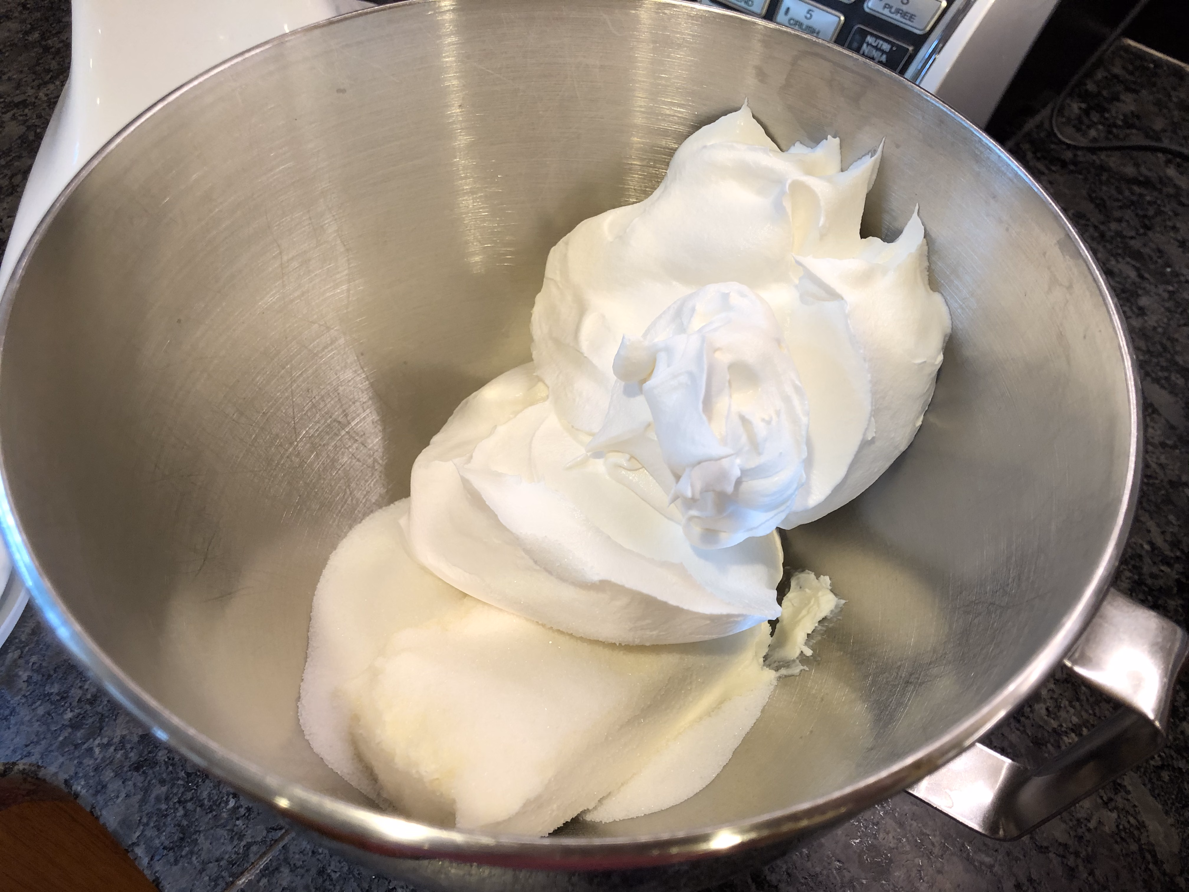 Add 1/2 cup sugar and vanilla pudding mix. Beat.