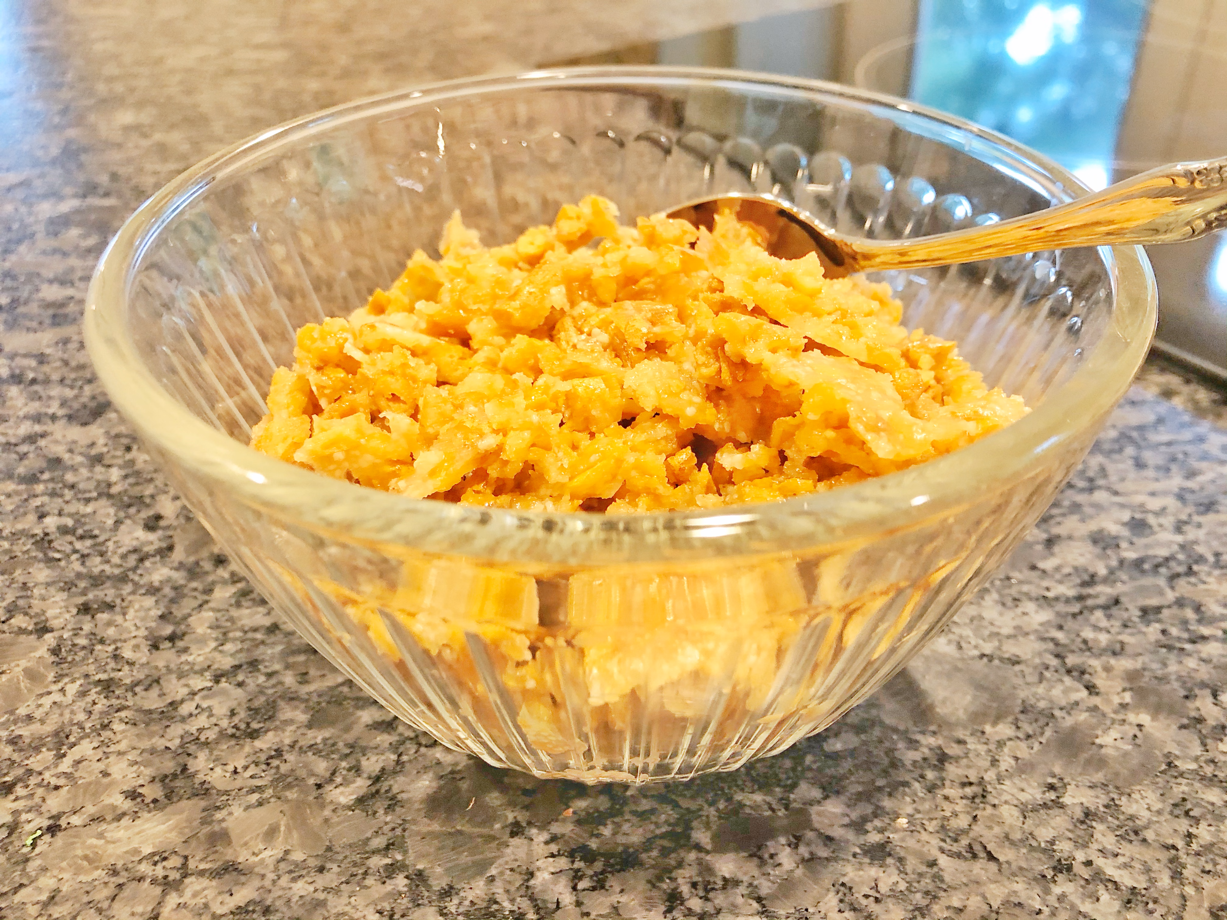 Spread mixture on a parchment lined baking sheet. Bake at 400°F for 7 minutes. Allow to cool completely, then using a knife, break into small pieces.